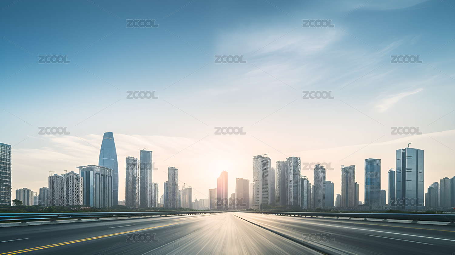 天空,地平线,夕阳,现代,建筑,高楼,城市,大厦,天际线,公路