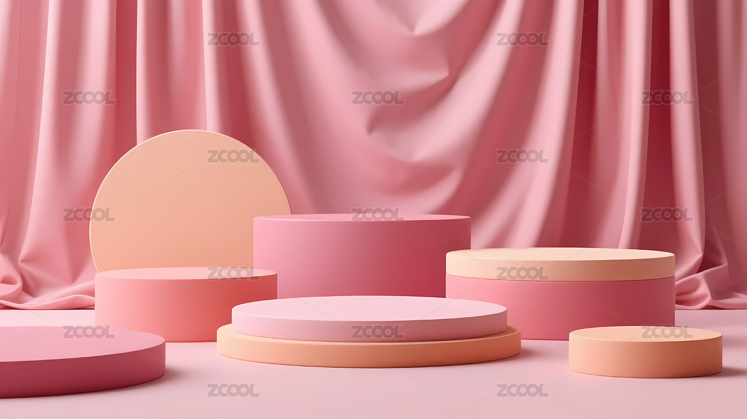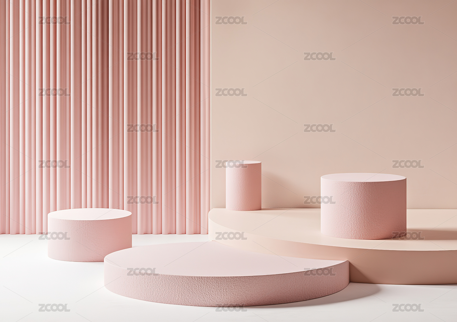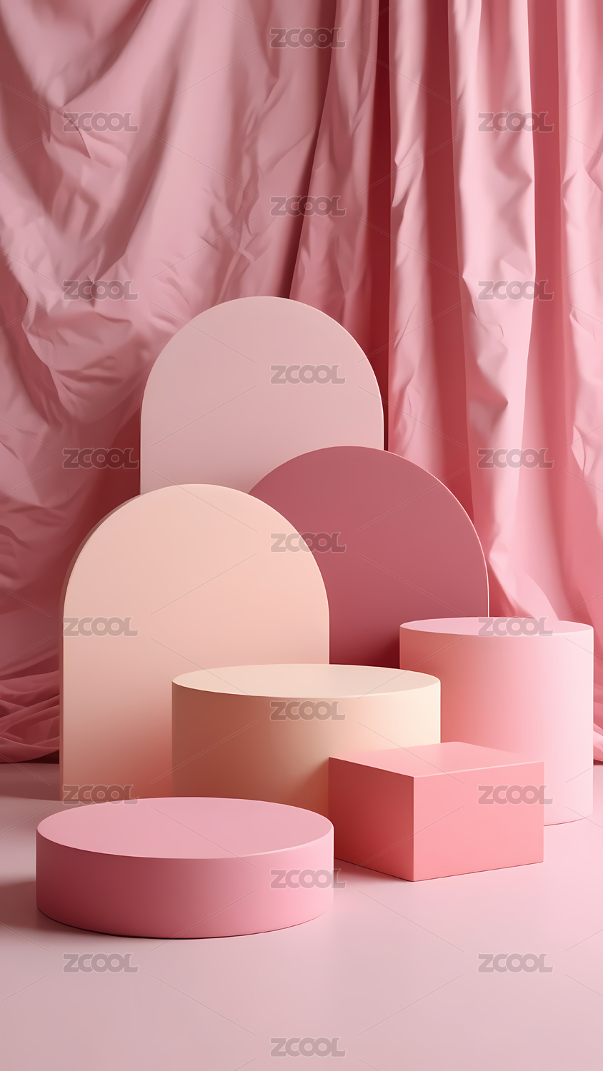 几何,梦幻,粉色,背景,温馨,平台,窗帘,圆柱,立方,组合