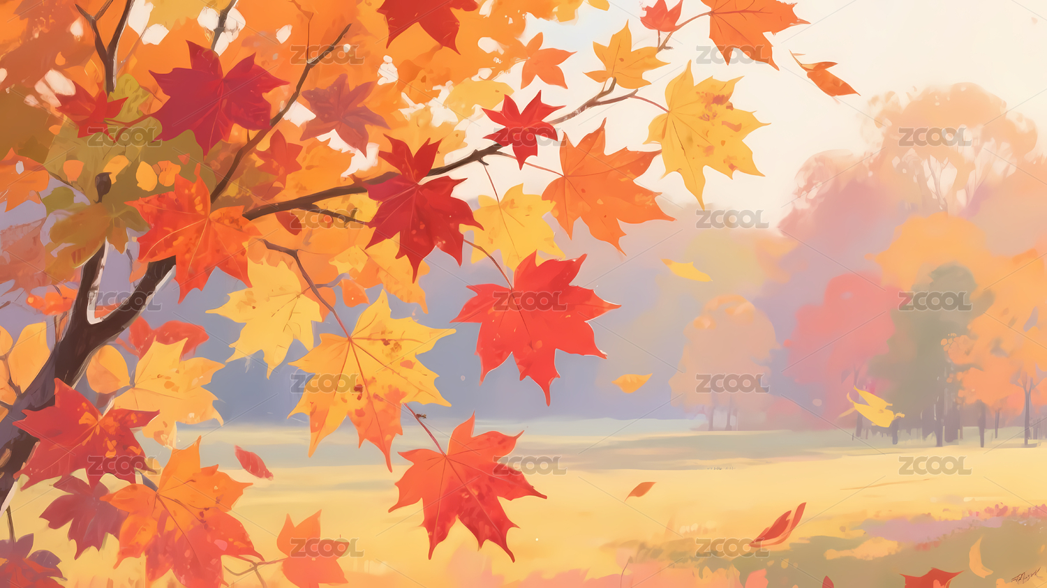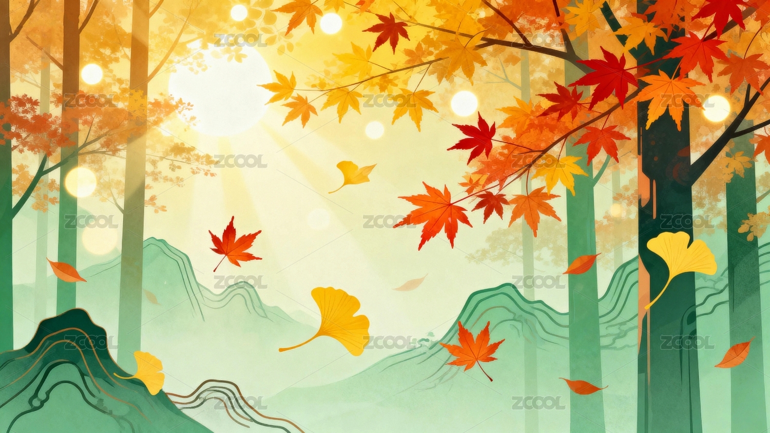 背景,素材,彩色,图案,国潮,清新,新鲜,金秋,彩绘,秋天