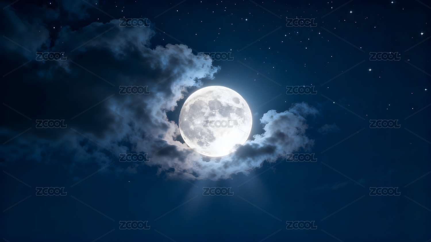 梦幻月亮背景唯美插图海上满月高清壁纸