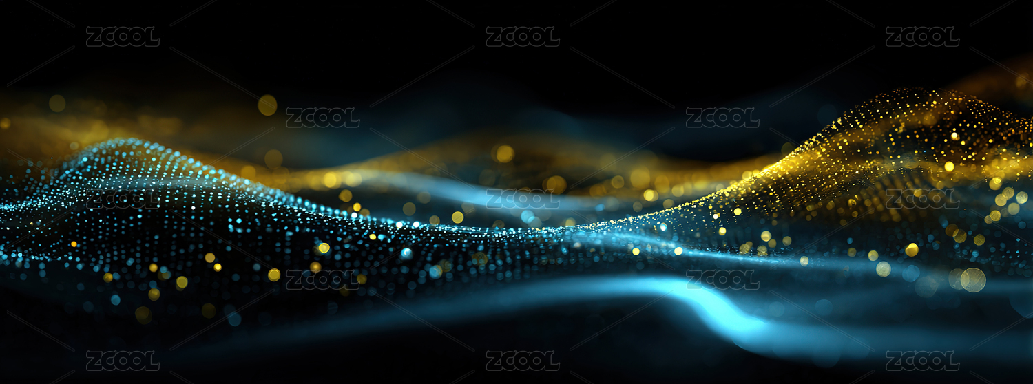 蓝金波浪粒子抽象图