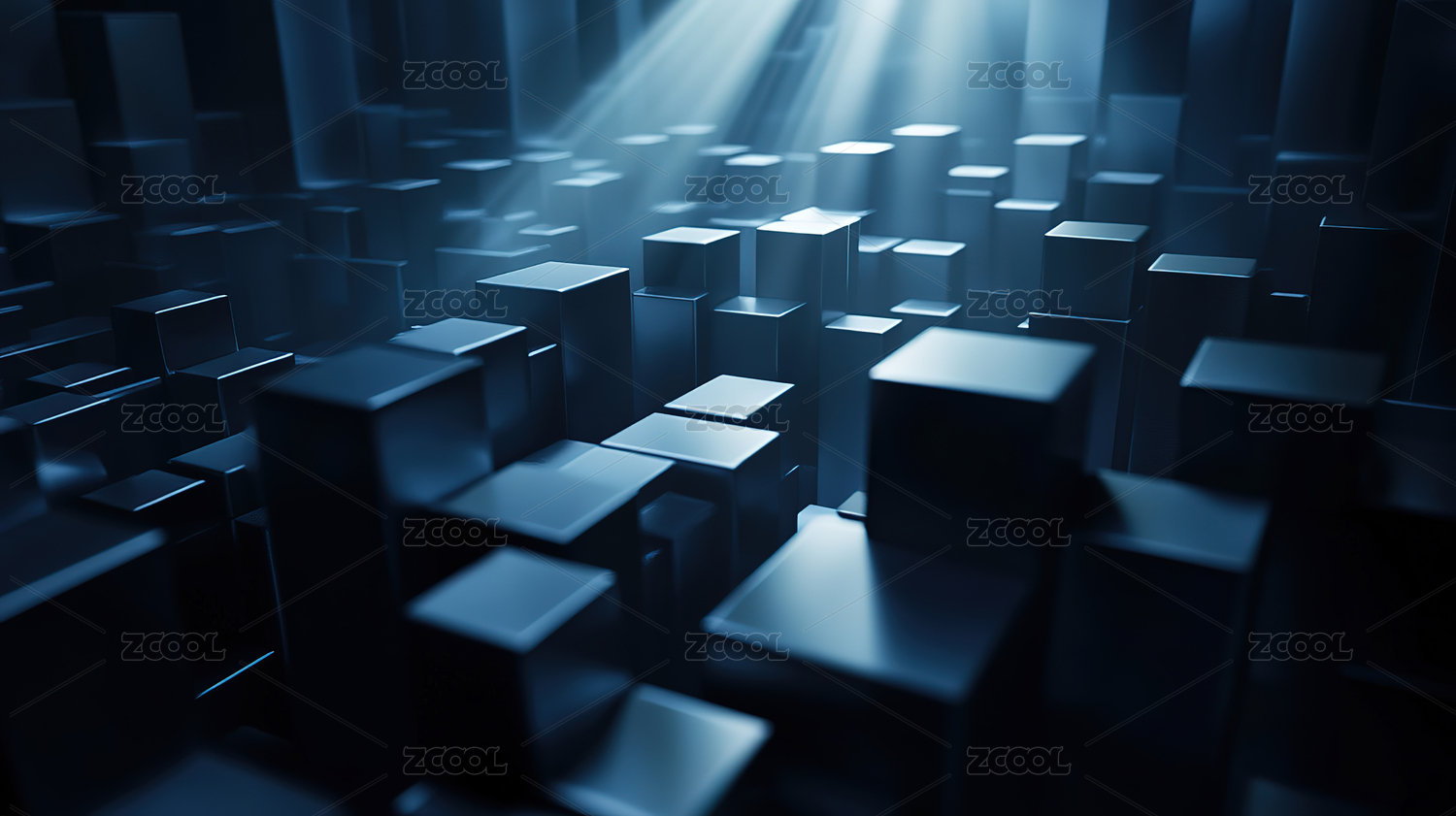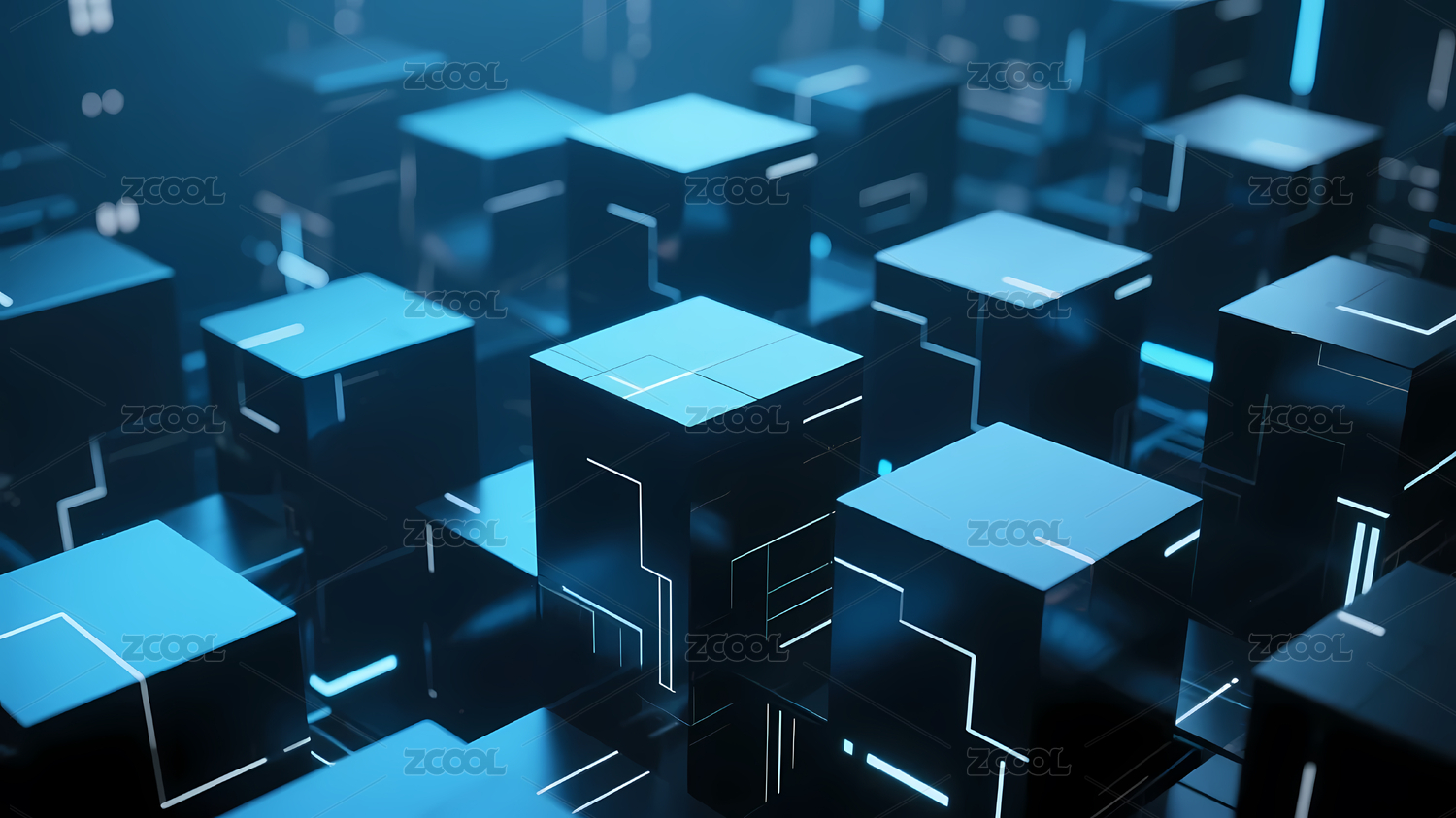 几何抽象科技背景,随机起伏的方块组合的类似芯片电路的背景。