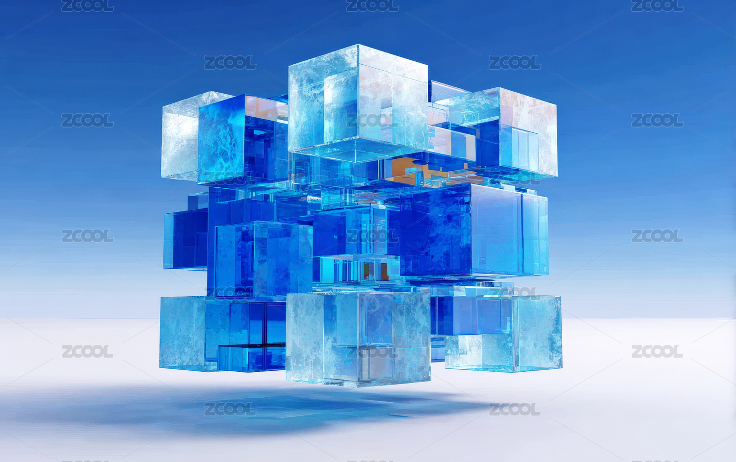 数码科技渐变蓝白色玻璃几何海报横版背景