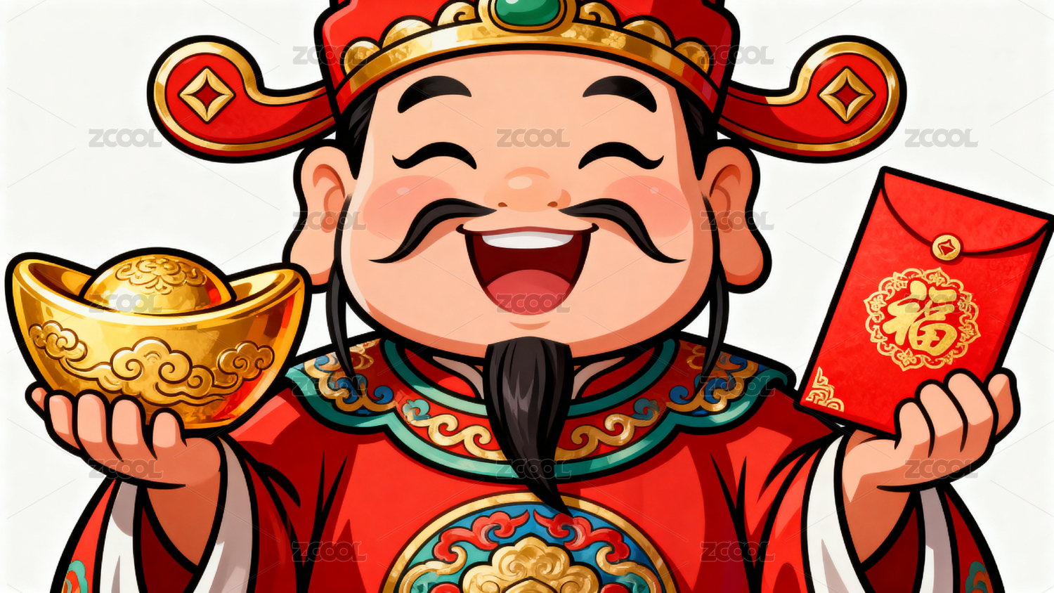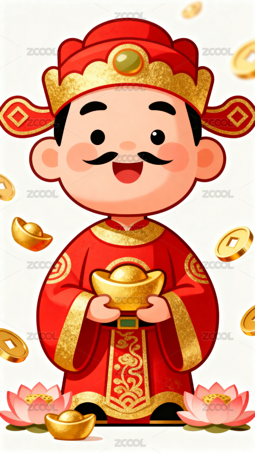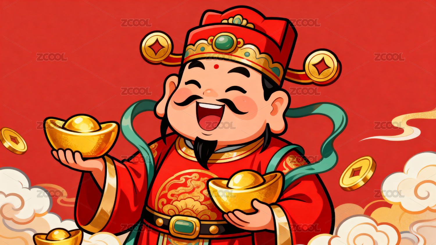 财神,元宝,红色,笑脸,服饰,花纹,传统,装饰,喜庆,图案