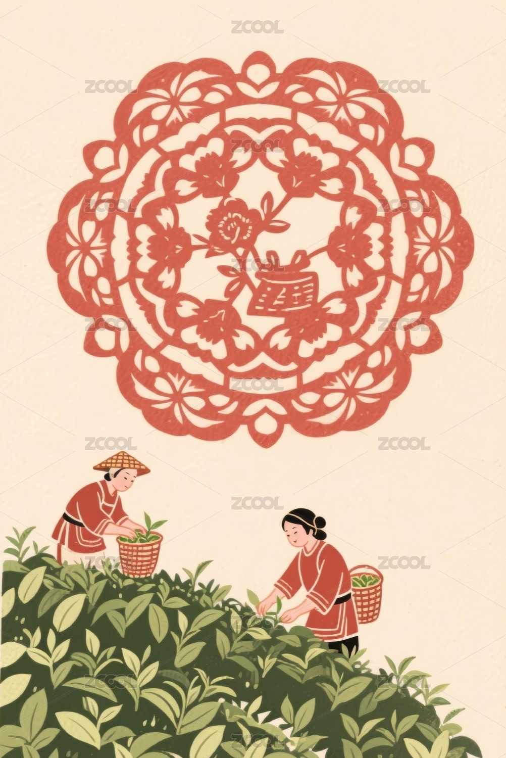 采茶人物国风田园场景