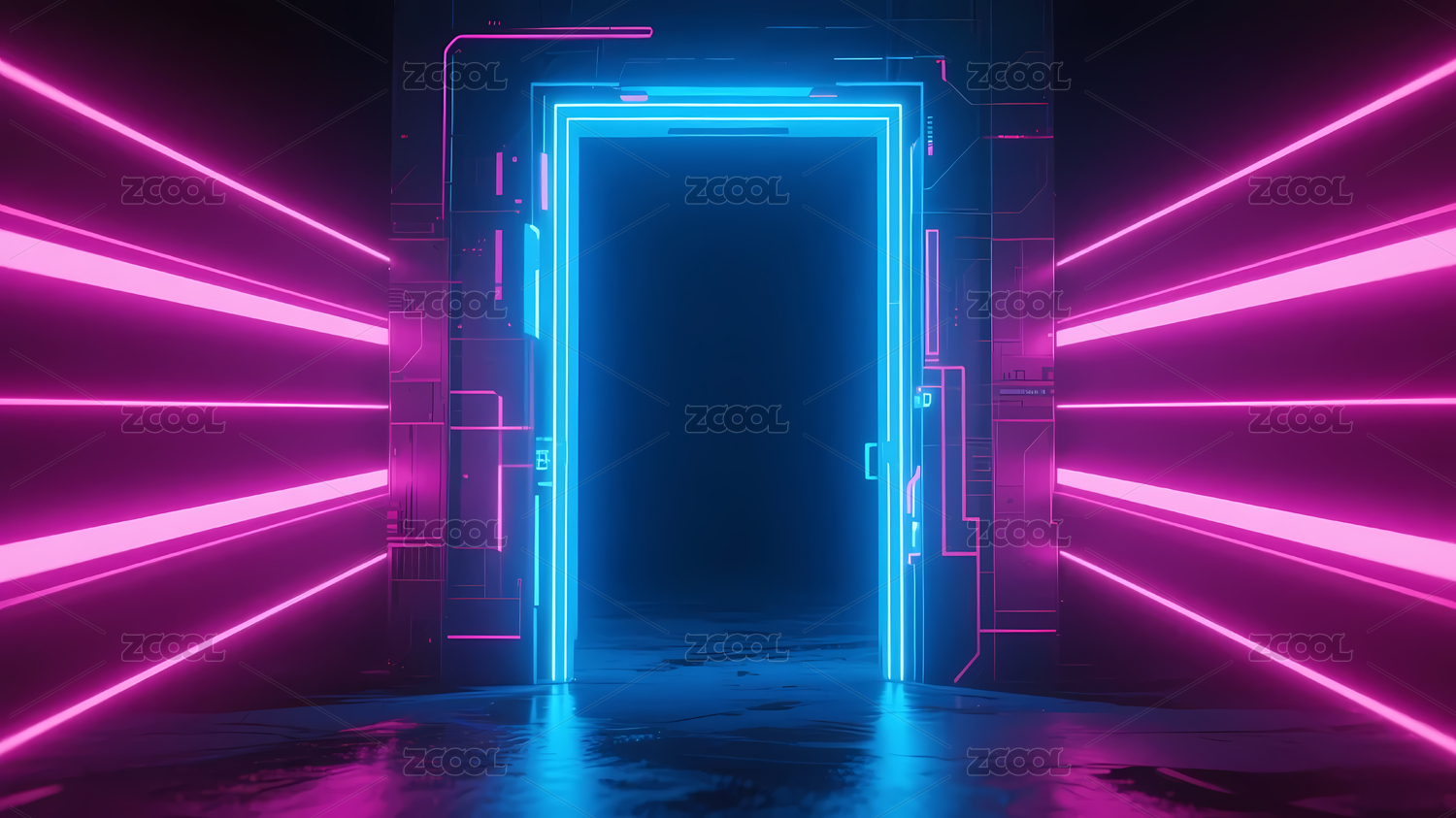 霓虹灯,深色,蓝色,神秘,现代,室内,紫色,门框,冷色调,黑暗
