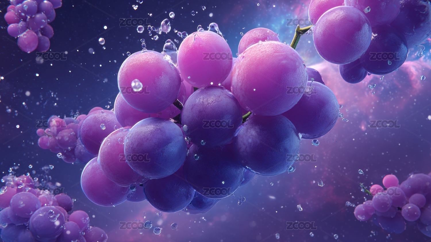 紫色葡萄水珠梦幻背景图