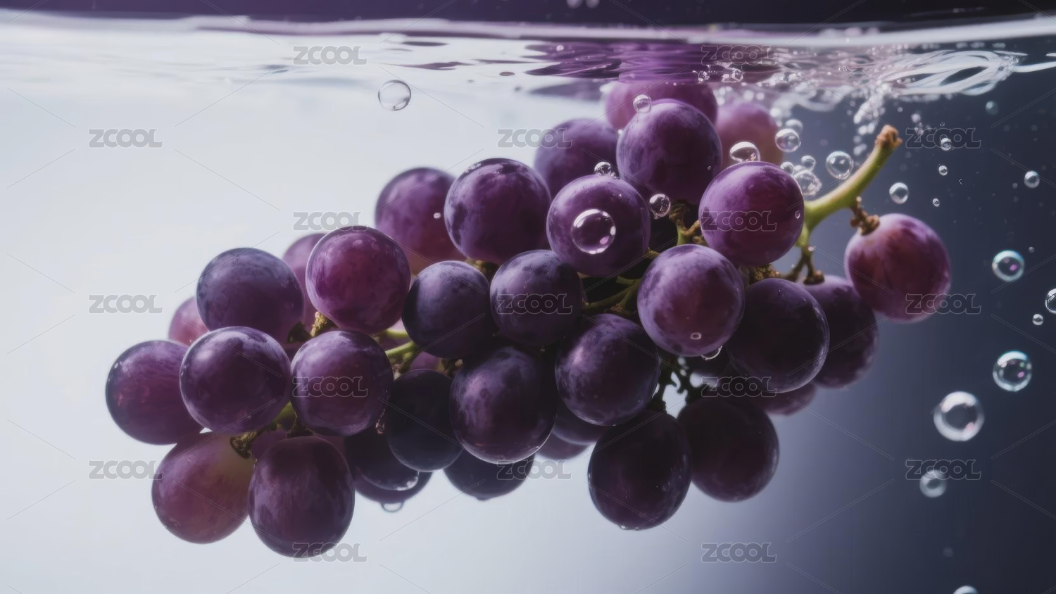 紫色葡萄在水中的动态瞬间