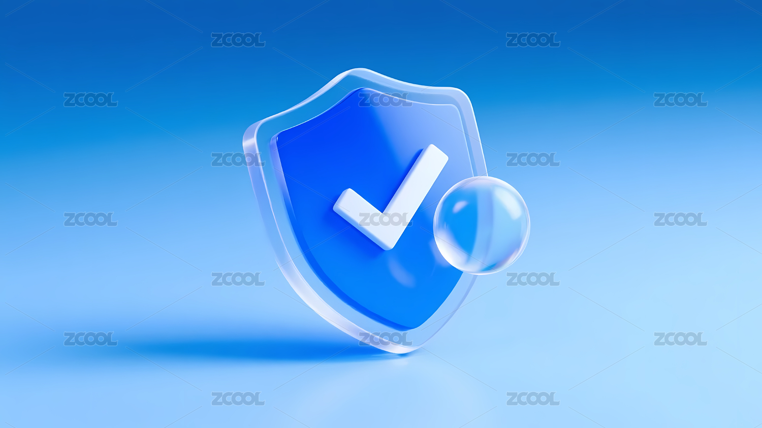 蓝色,渐变,白色,盾牌,安全,对勾,球体,信任,图标,底座