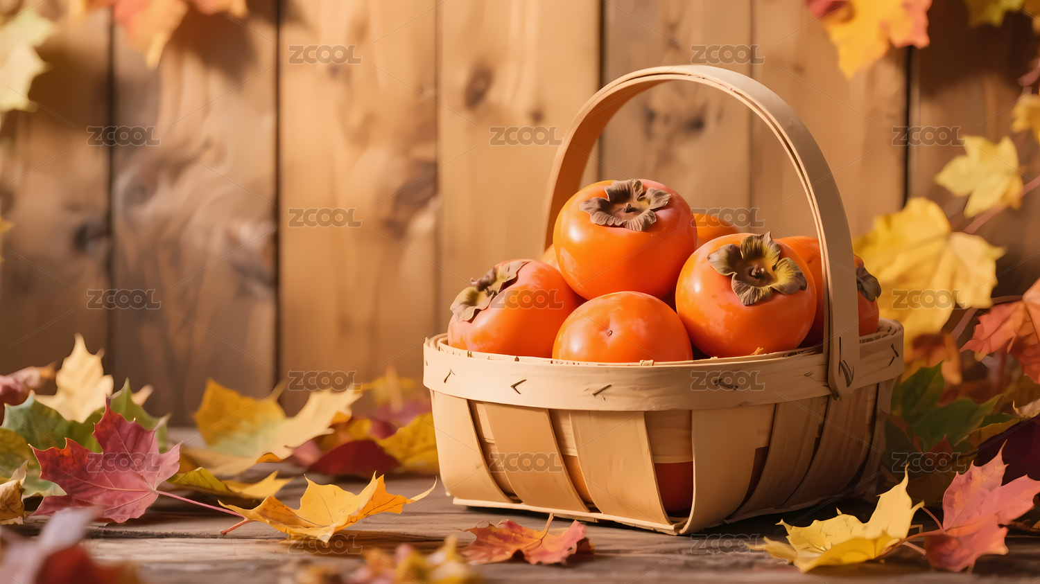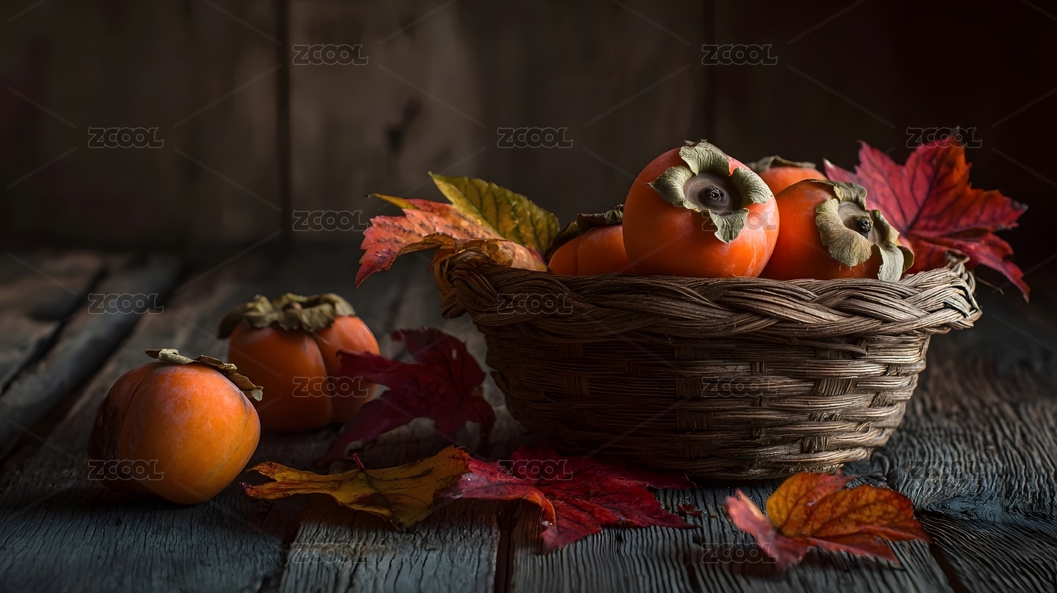 光线,宁静,自然,植物,色调,柿子,编织篮,落叶,温暖,秋天
