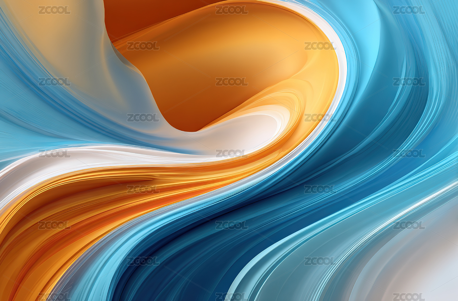 蓝橙色彩交织成流动线条呈现艺术动感视觉