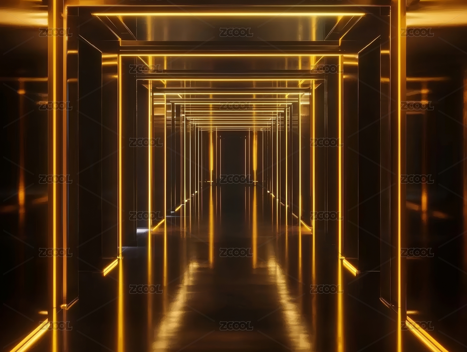 金色发光通道走廊建筑空间背景