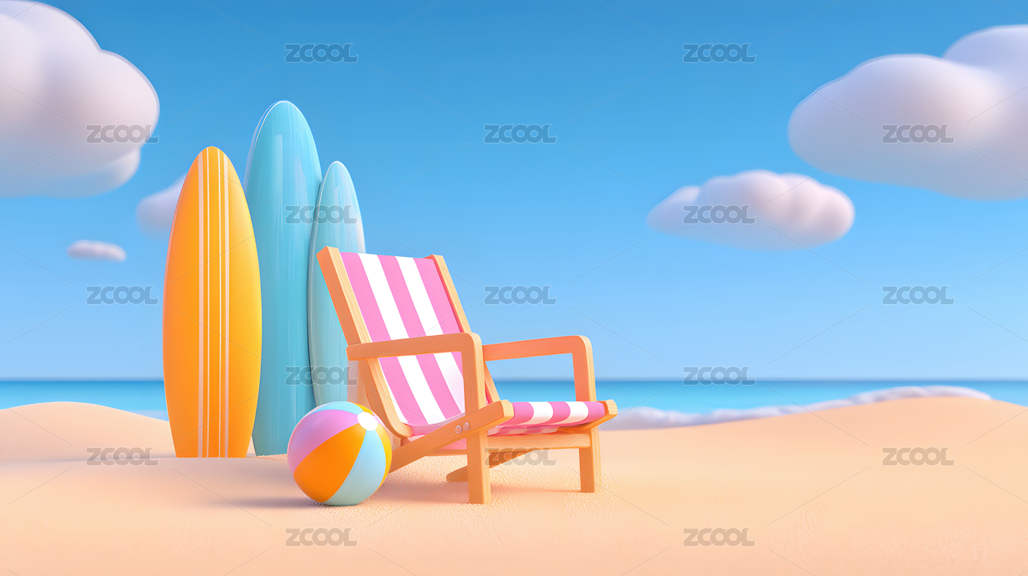 夏日海边沙滩度假出游夏季海滩3D清新插画