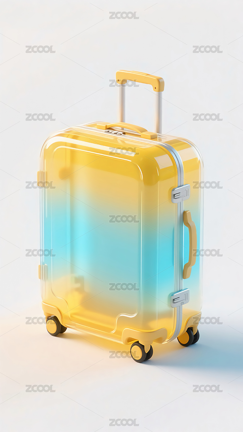 透明行李箱置于黄色背景
