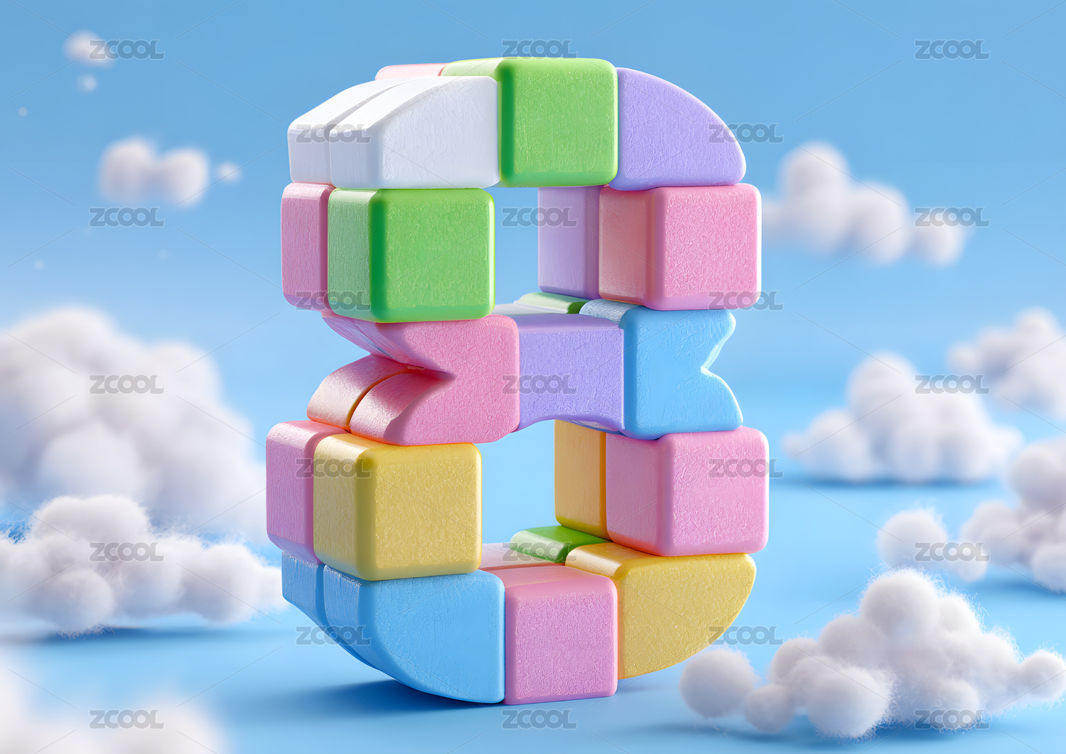 彩色卡通拼图艺术字数字8