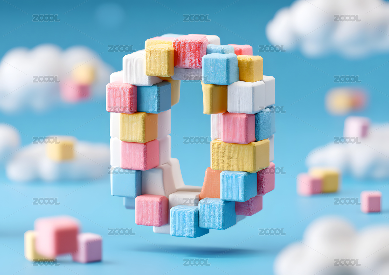 彩色卡通拼图艺术字数字0