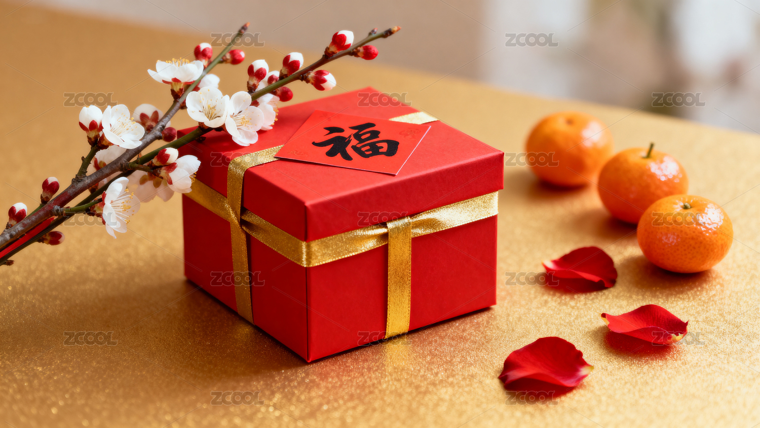 红色礼盒梅花装饰