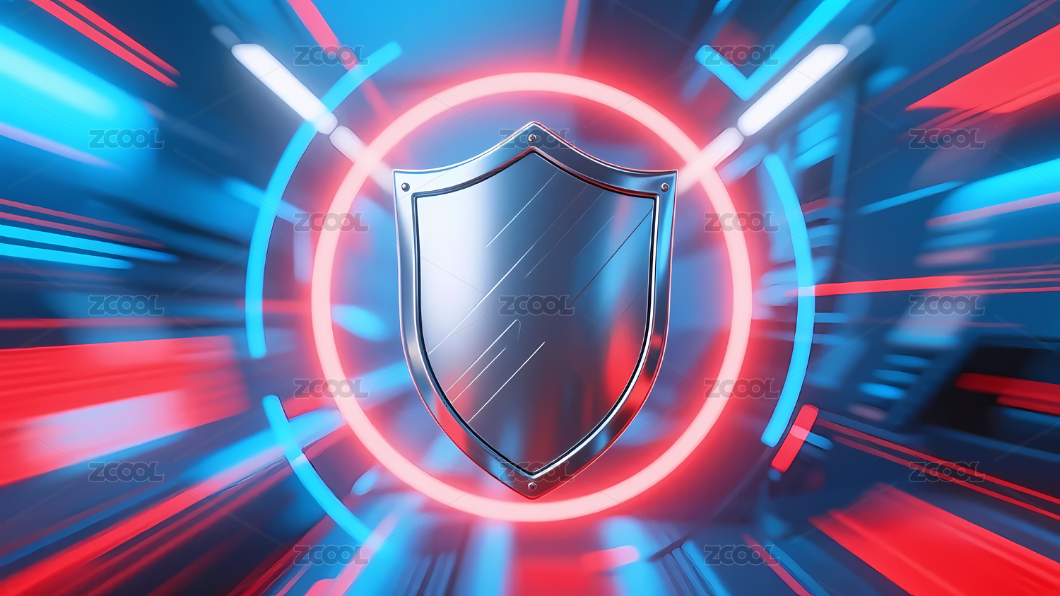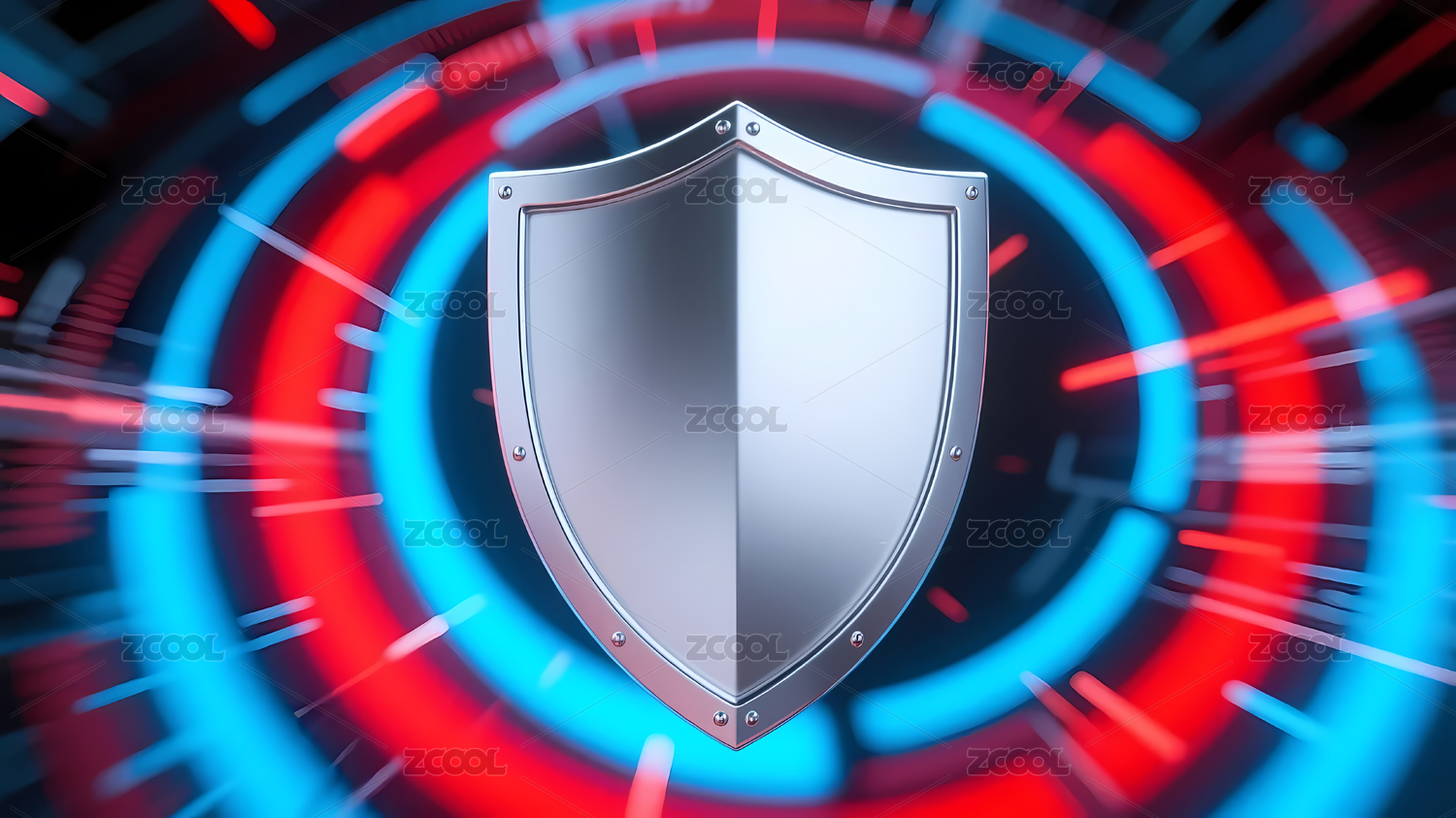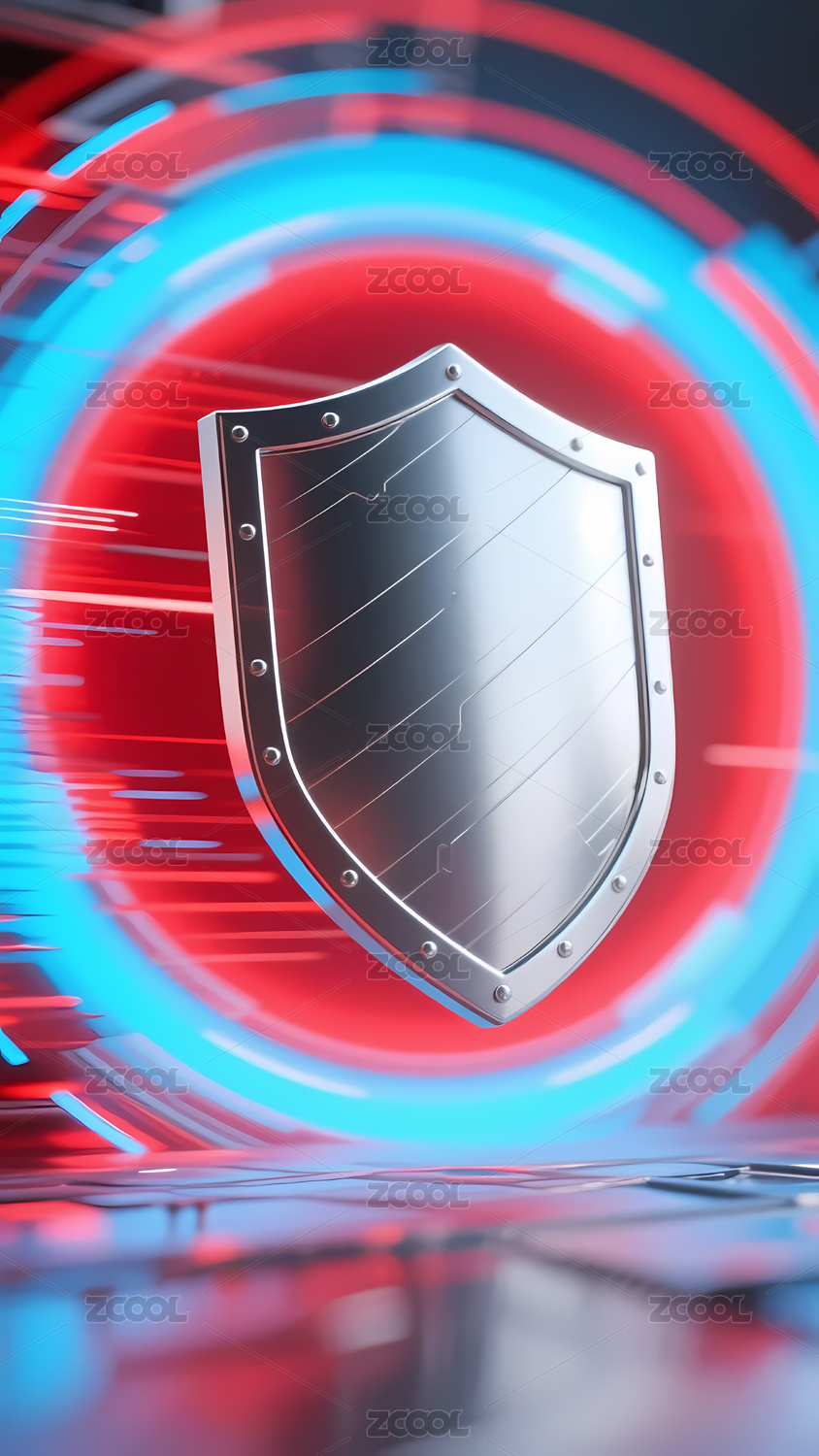 科技,未来,光效,蓝色,渐变,盾牌,银色,保护,红色,安全
