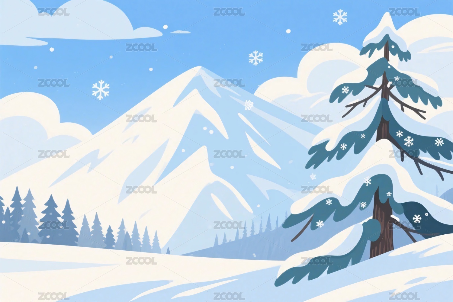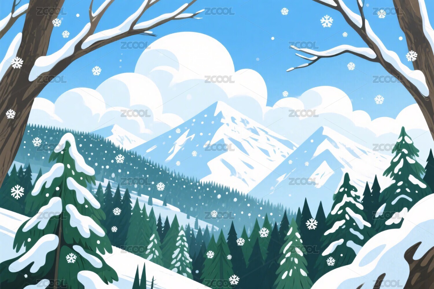 冬季山林雪景插画