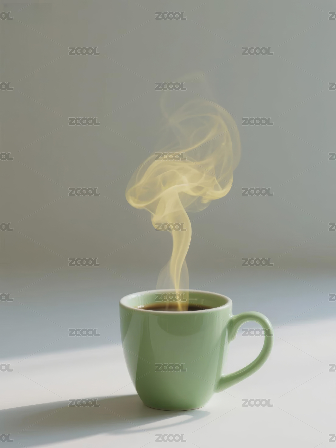 木盘上一杯咖啡里面冒出烟雾高清图片