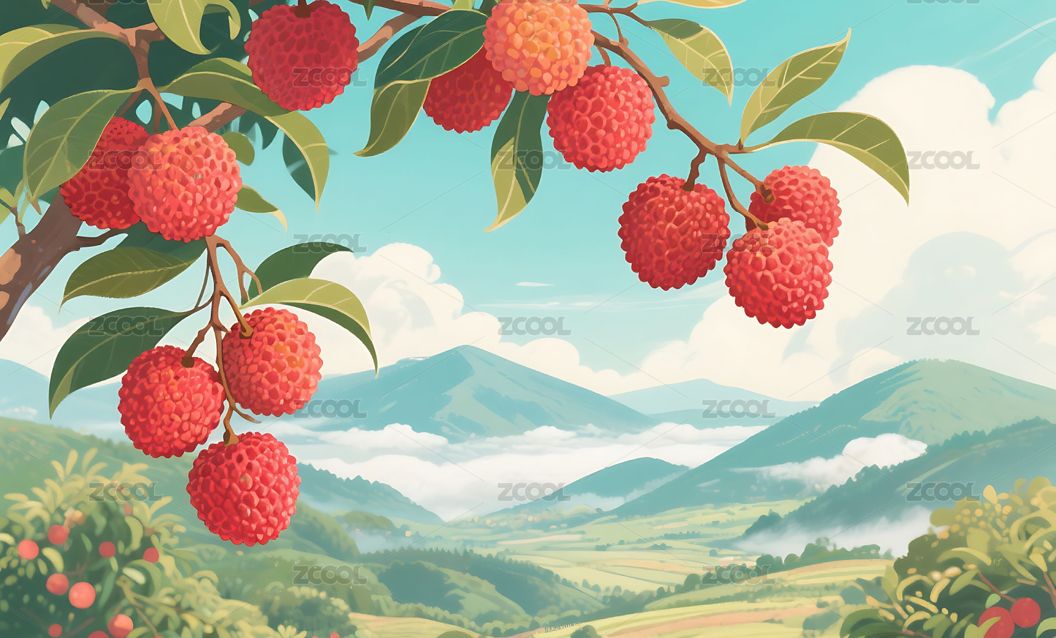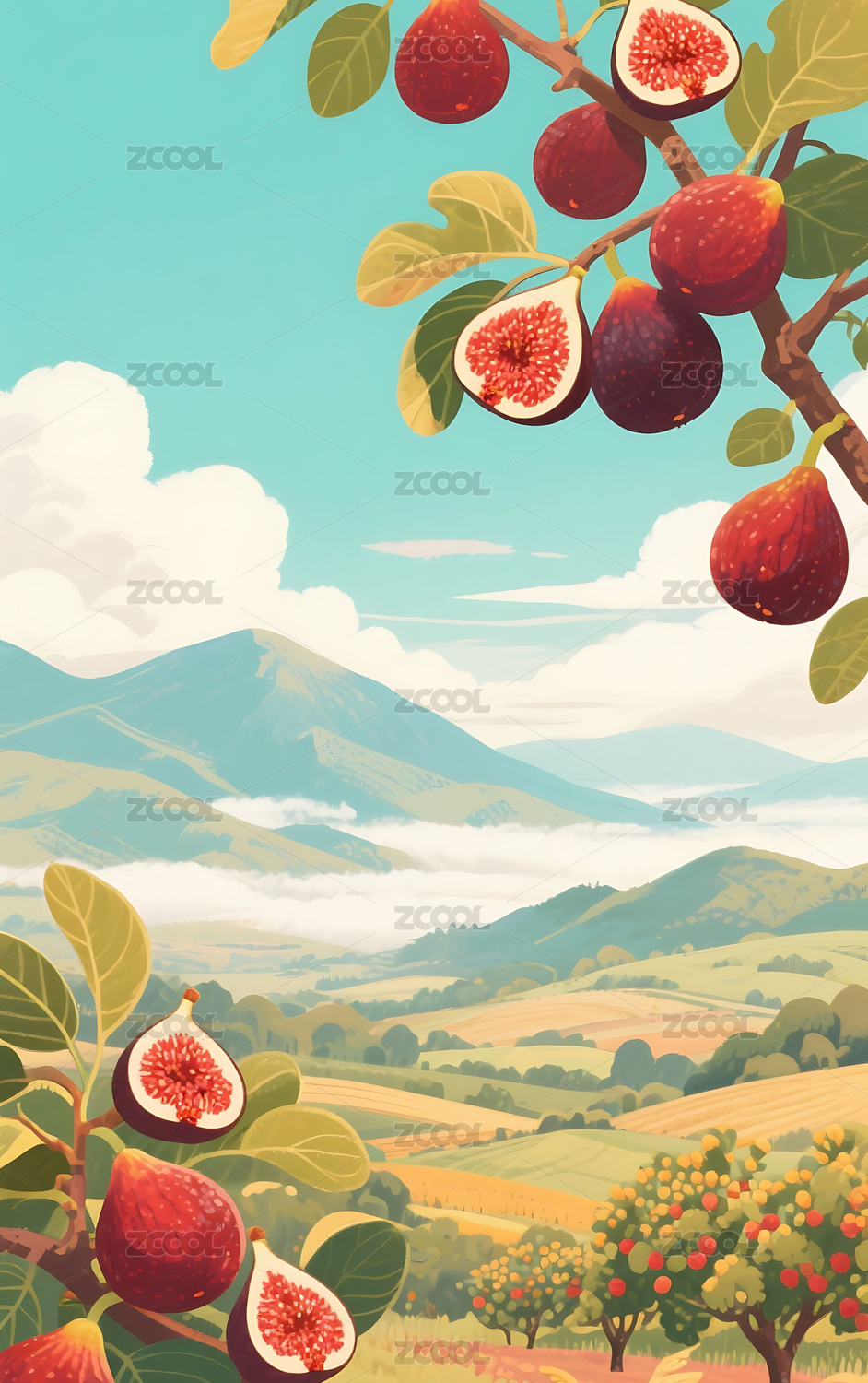 清新,插画,背景,壁纸,田园,自然,风景,天空,山,云雾