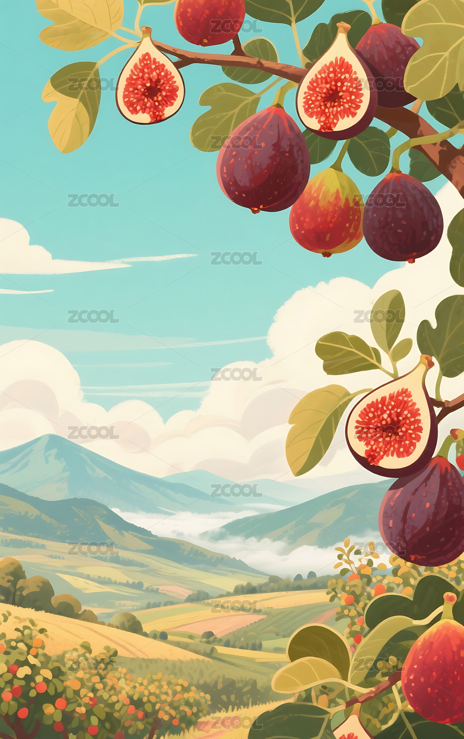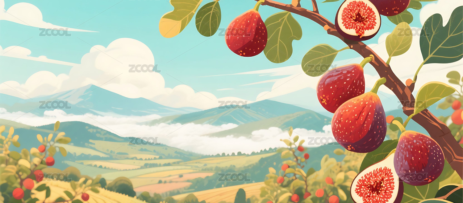 清新,插画,背景,壁纸,田园,自然,风景,天空,山,云雾