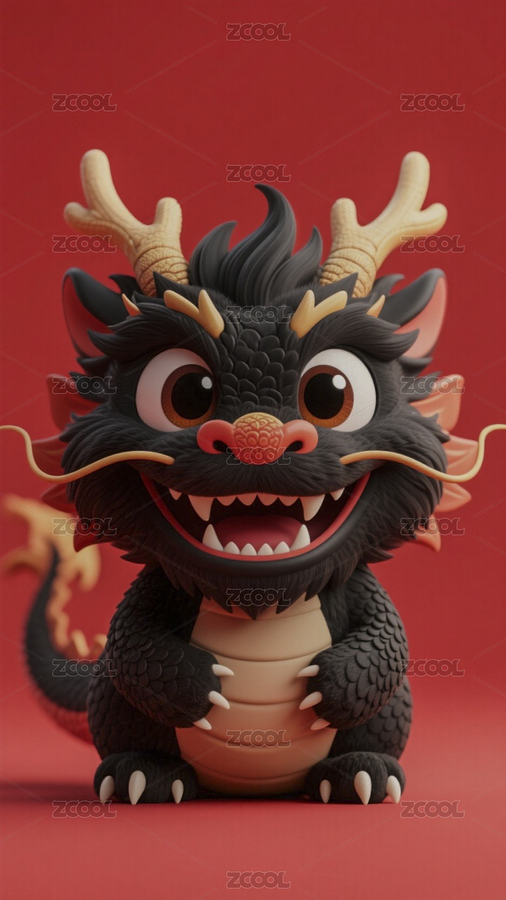 龙,中国龙,卡通形象,可爱,喜庆,微笑,长胡须,大眼睛,毛茸茸,吉祥