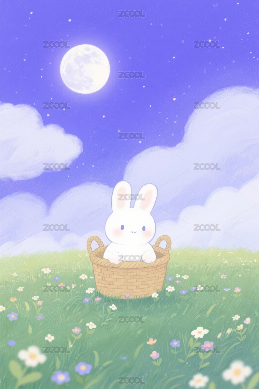 白兔篮子梦幻感月夜场景