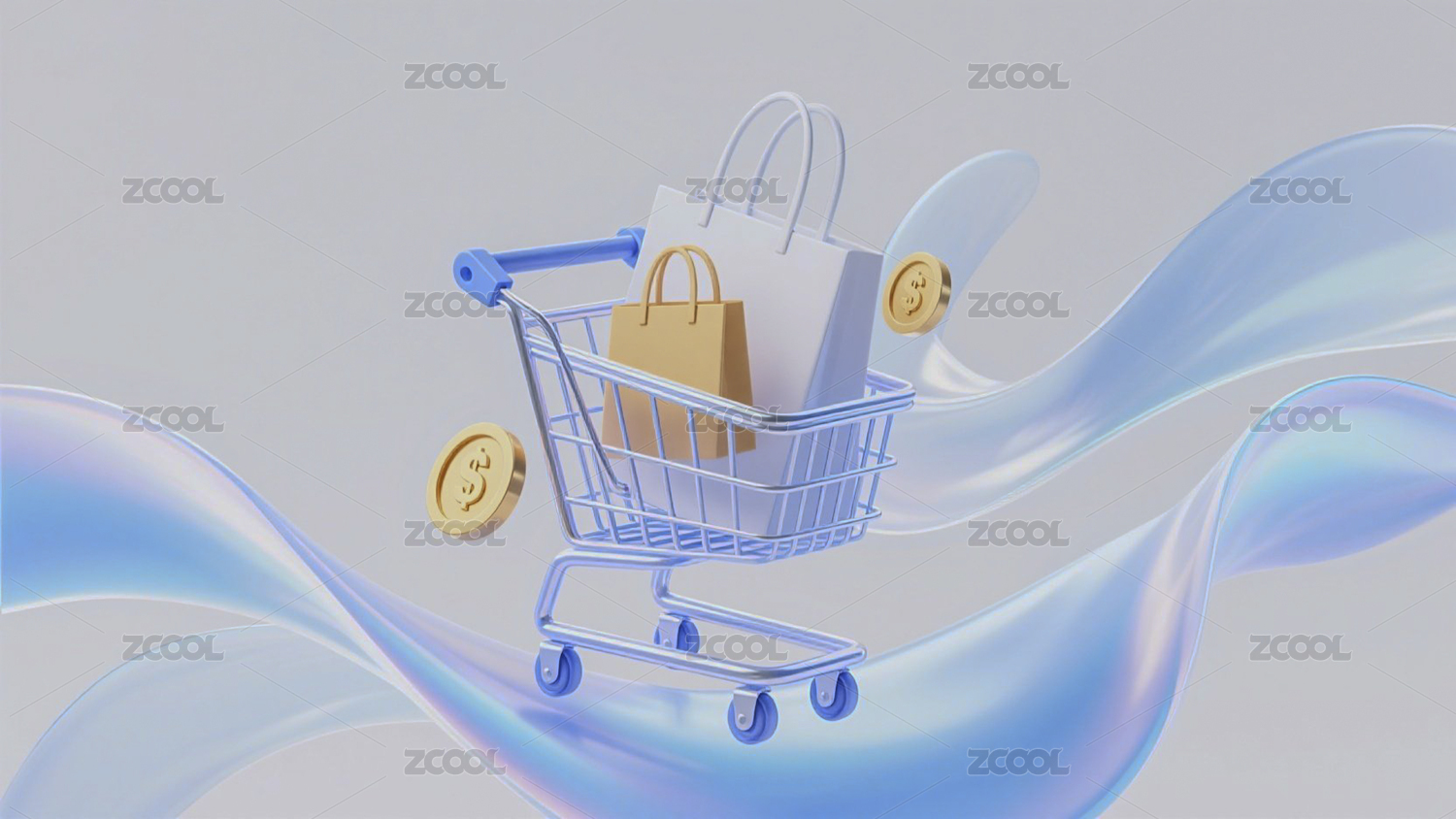 购物车,金币,电商,促销,购物袋,消费,购物,现代,设计,波浪