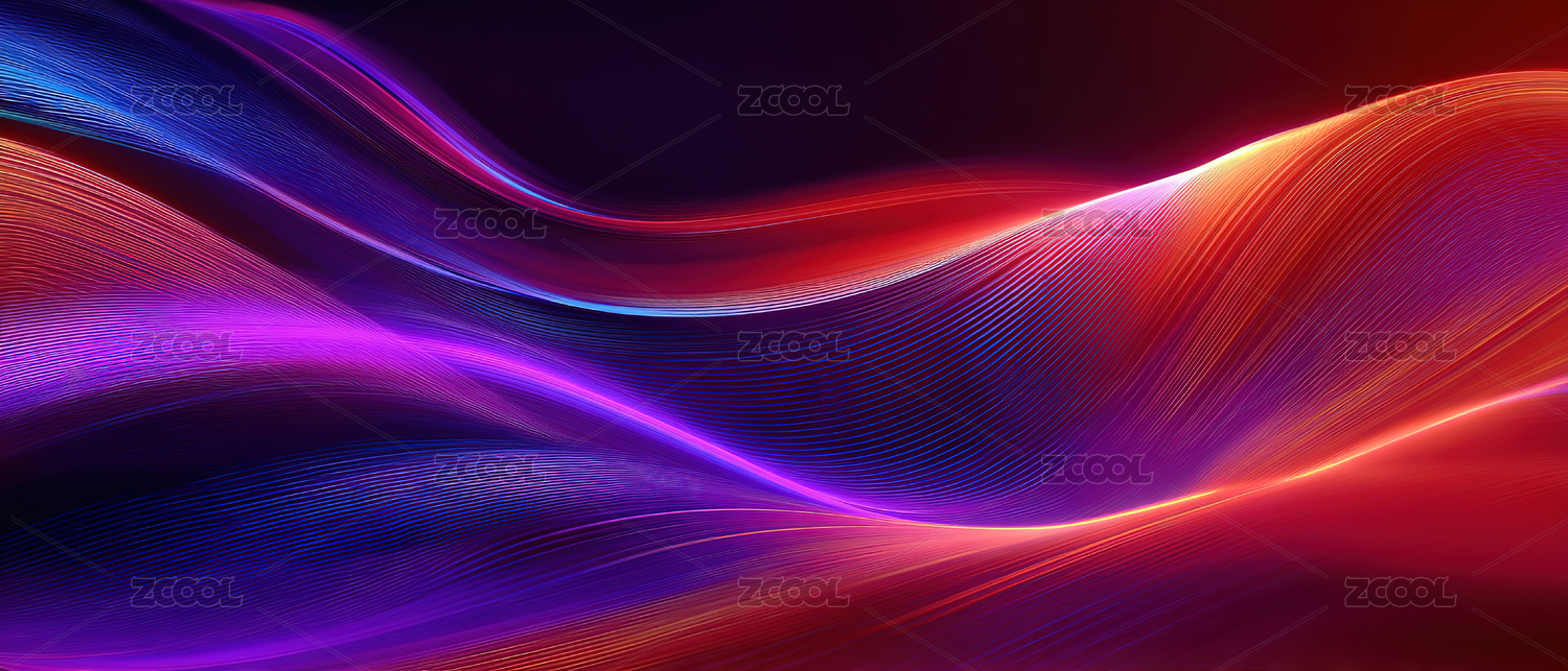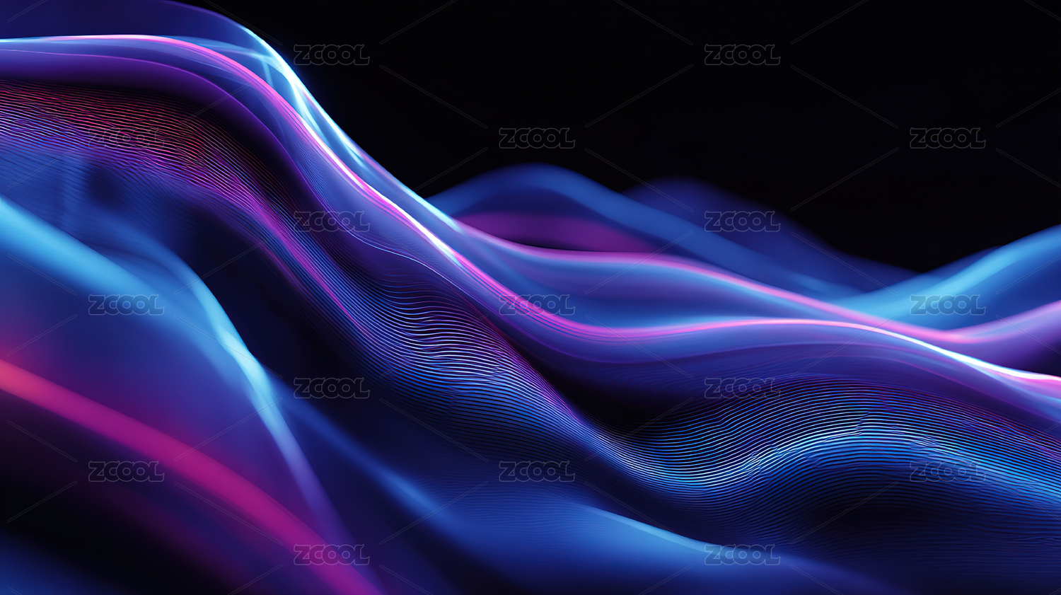 数码科技蓝紫曲线光波抽象图形海报网页背景