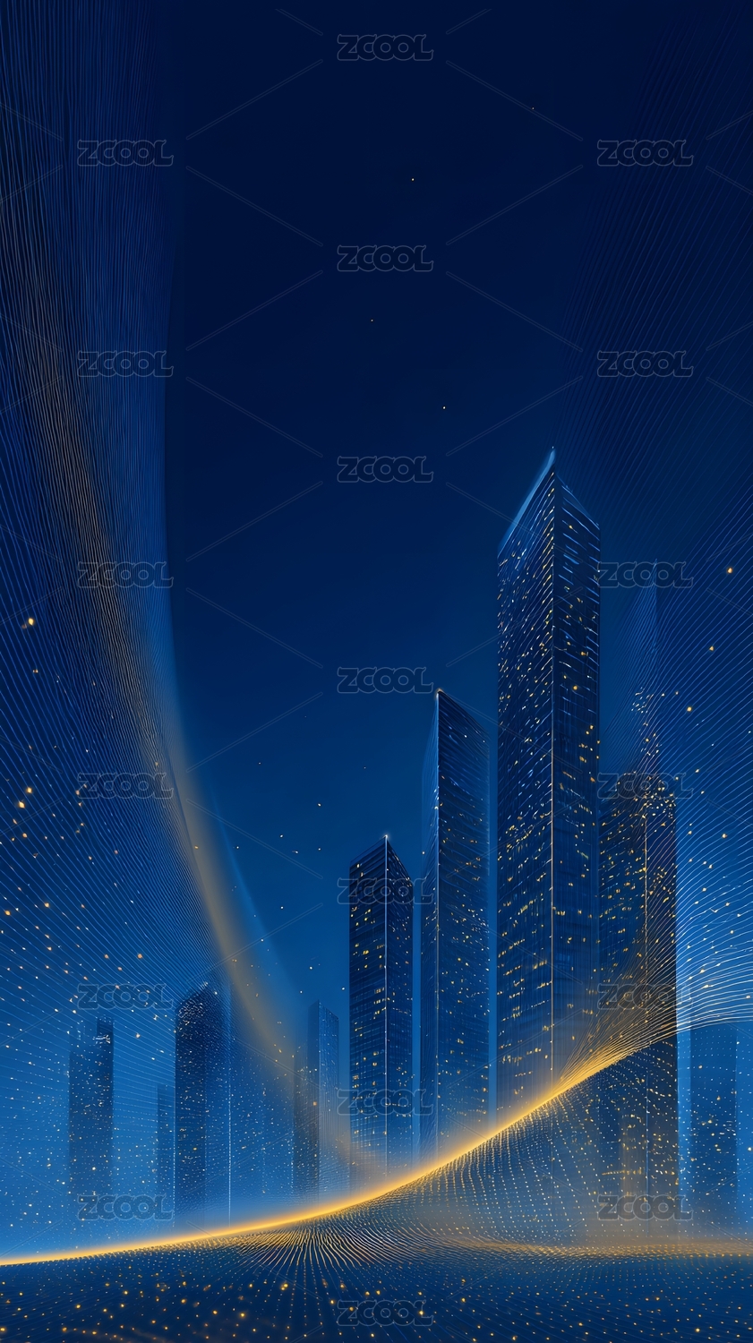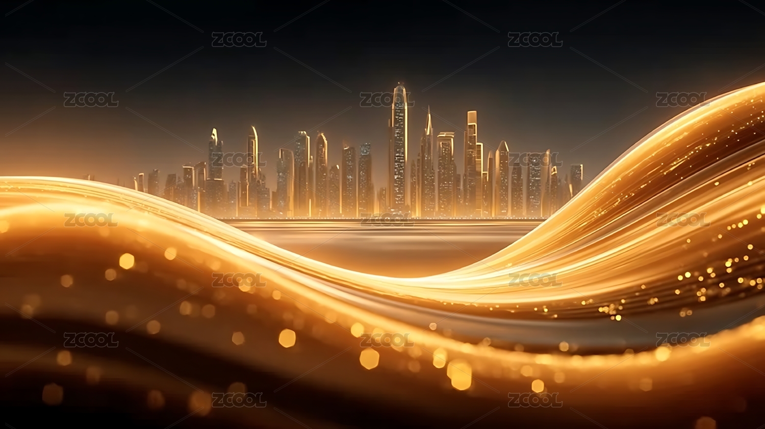 金色流动粒子金属城市建筑背景