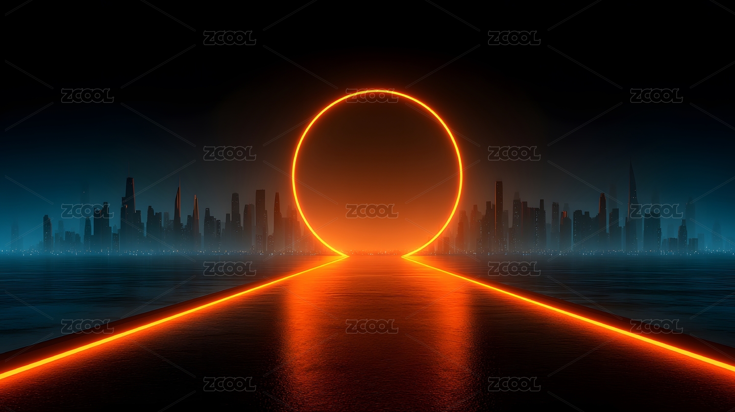 霓虹城市夜景光环未来感