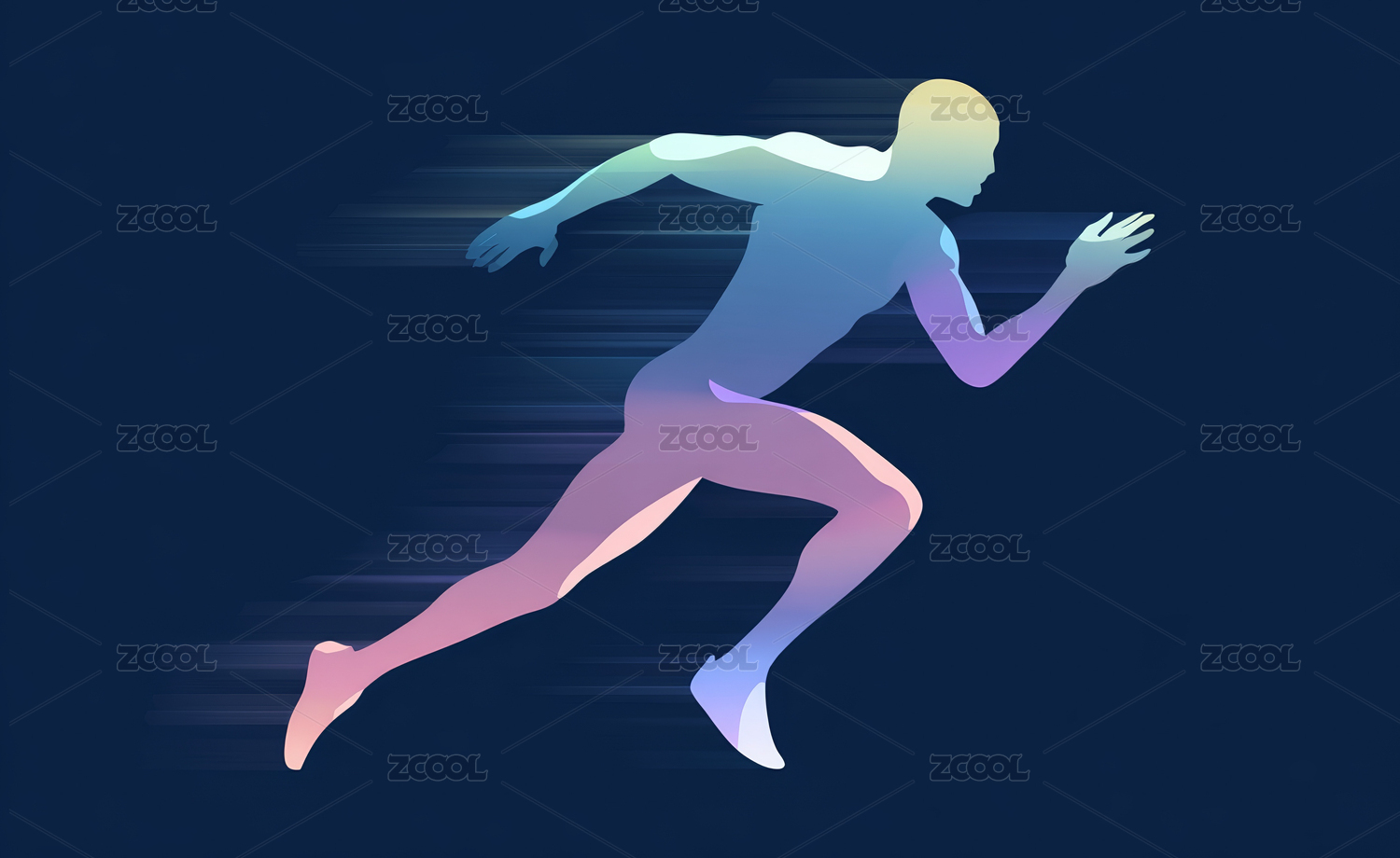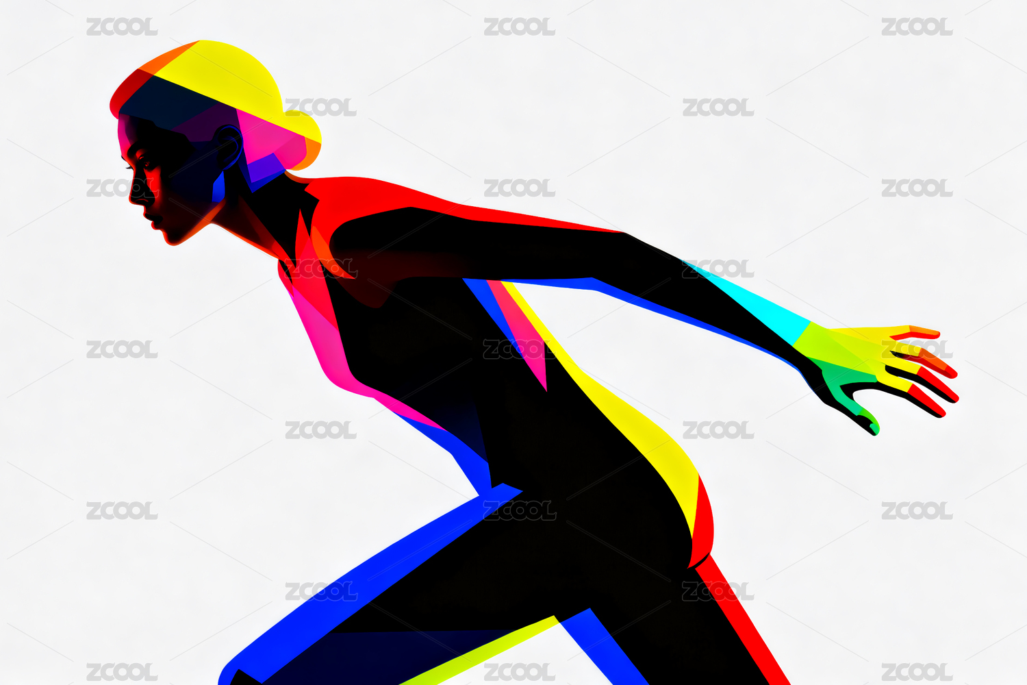 男性跑步者于几何色彩中奔跑