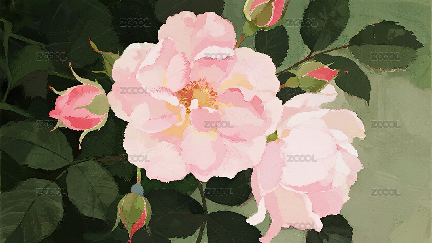 鲜艳玫瑰绽放,复古风格,淡雅氛围
