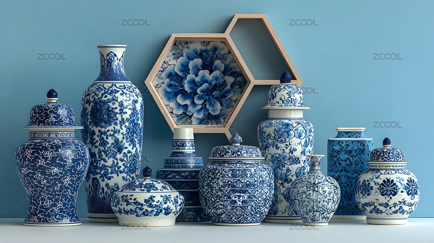 青花瓷瓶窗边静谧 夕阳余晖映衬