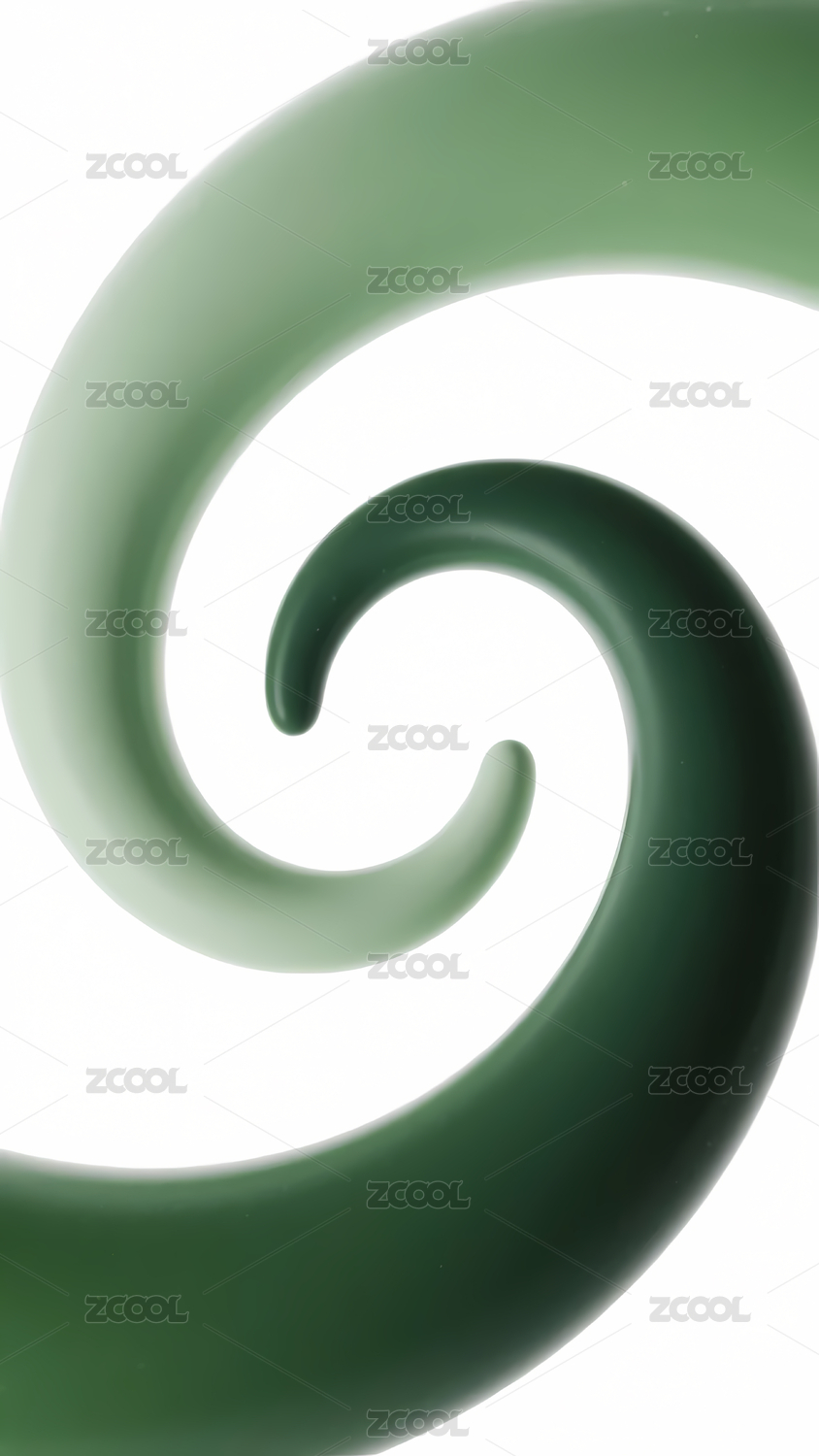 绿色螺旋波纹漩涡特写抽象图形3D插画立体