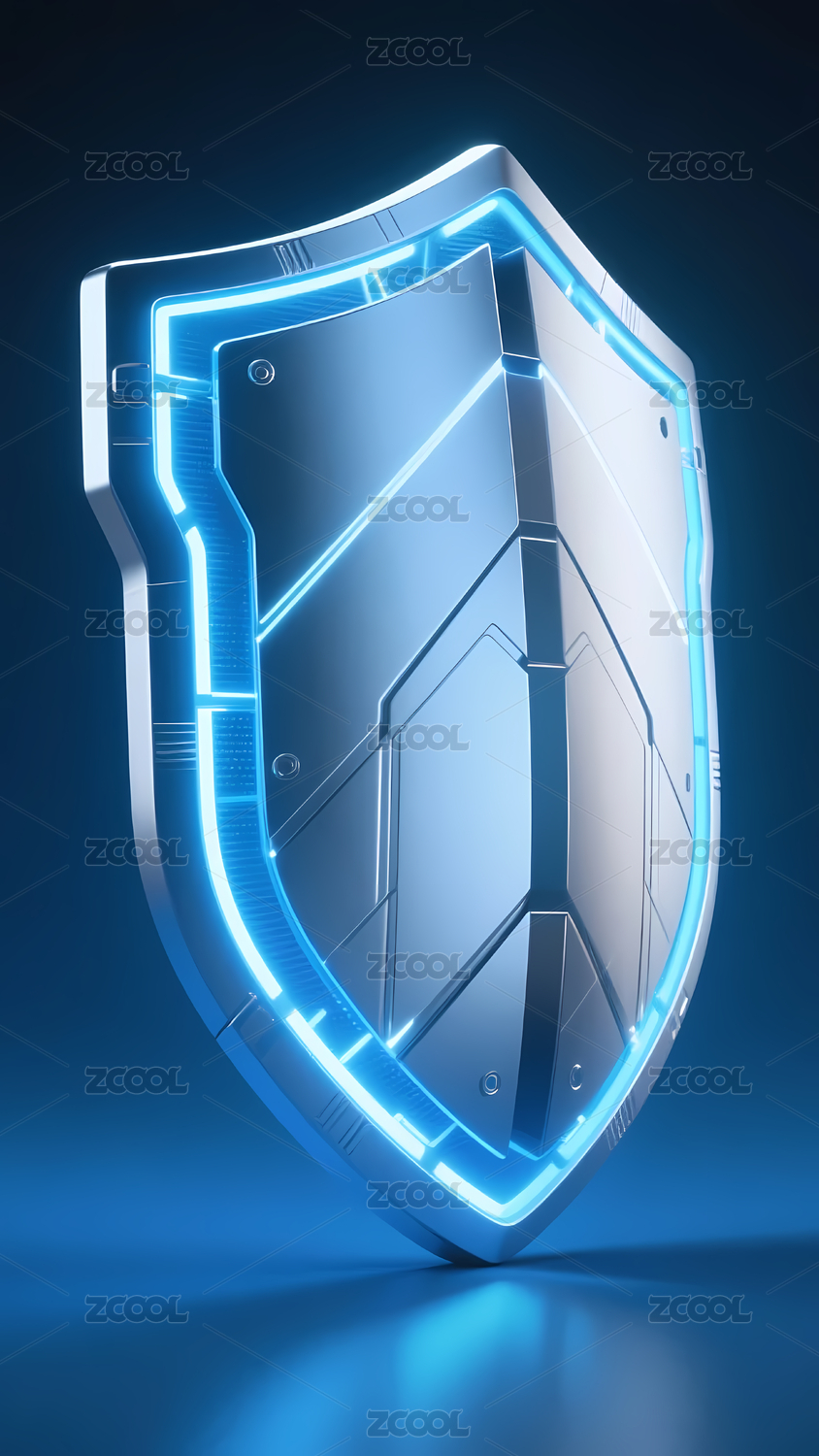 深色,明亮,渐变,科技,蓝色,发光,盾牌,立体,五角星,保护