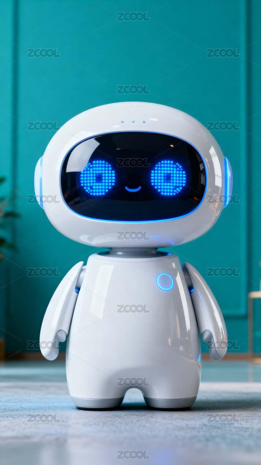 可爱机器人,蓝色背景下的科技伙伴