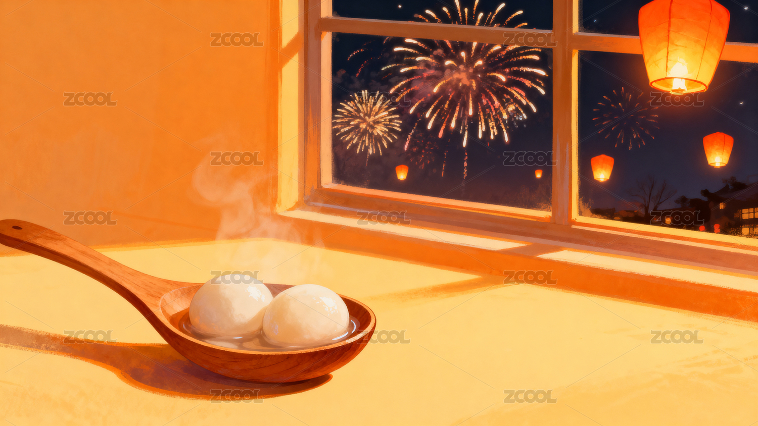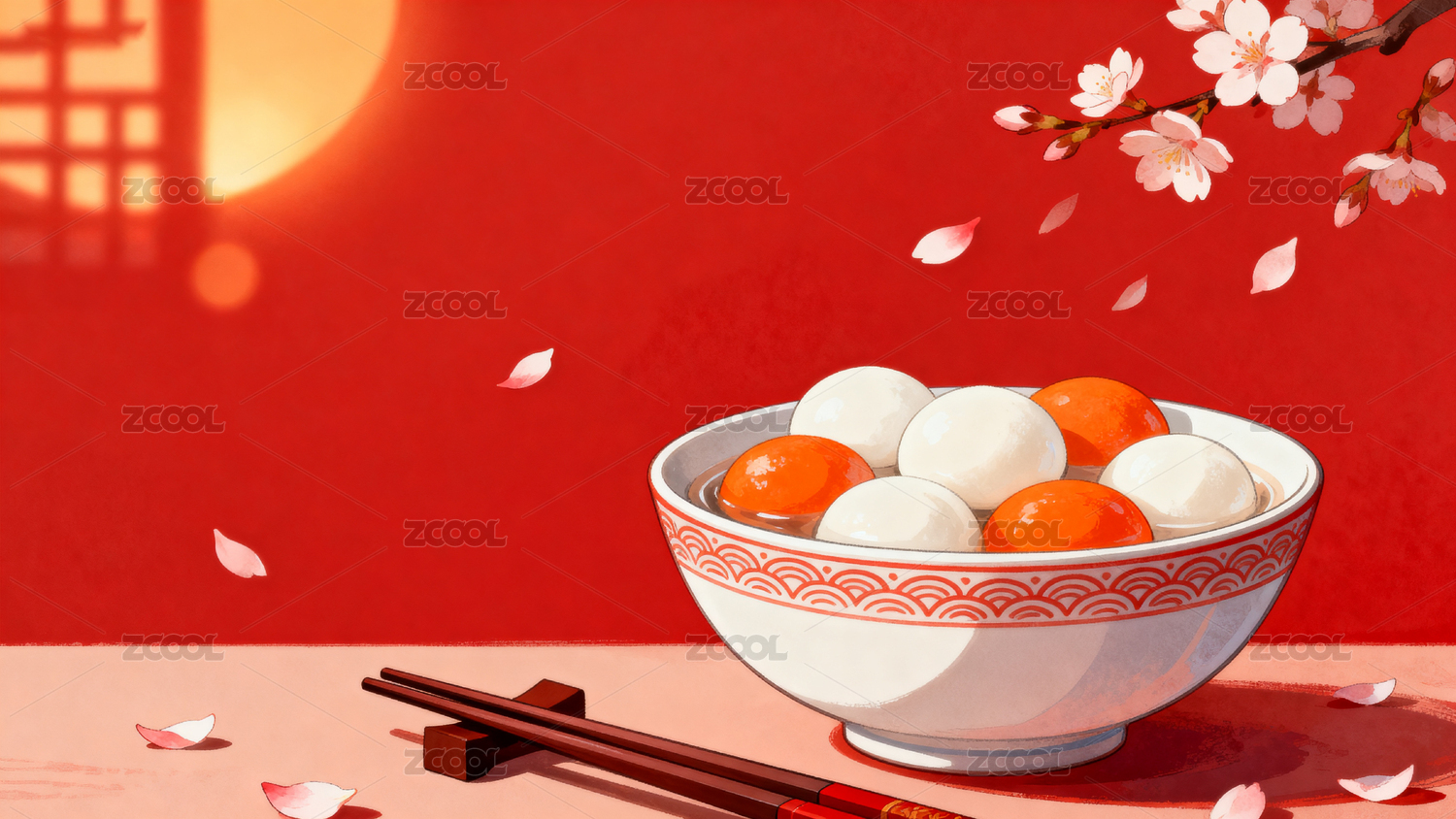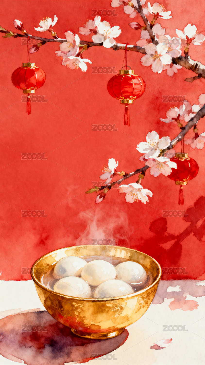 汤圆,碗,红色,蒸汽,热气,节日,食品,背景,灯笼,金色