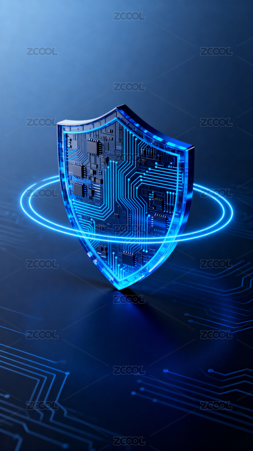 科技感蓝色盾牌与电路图案