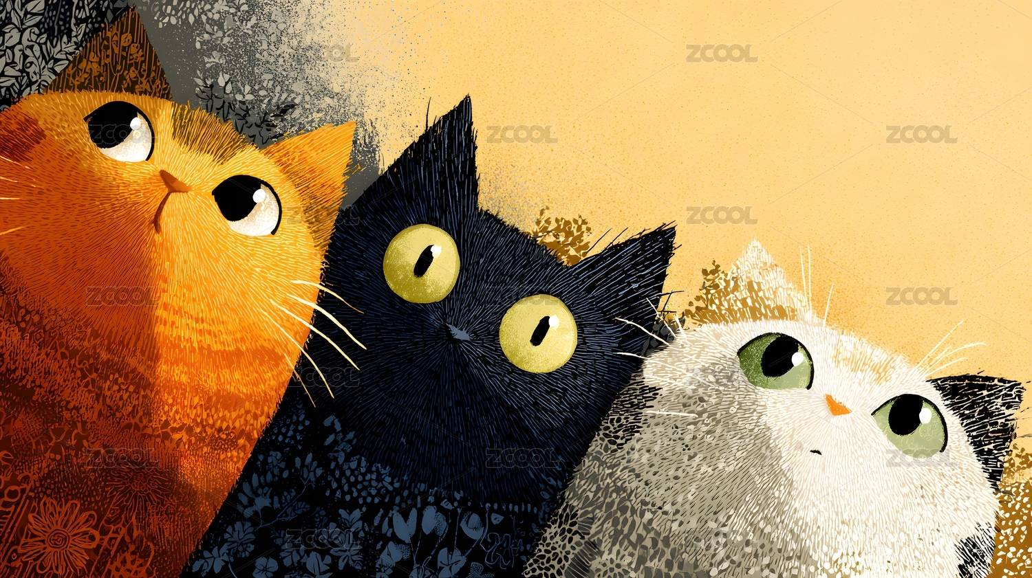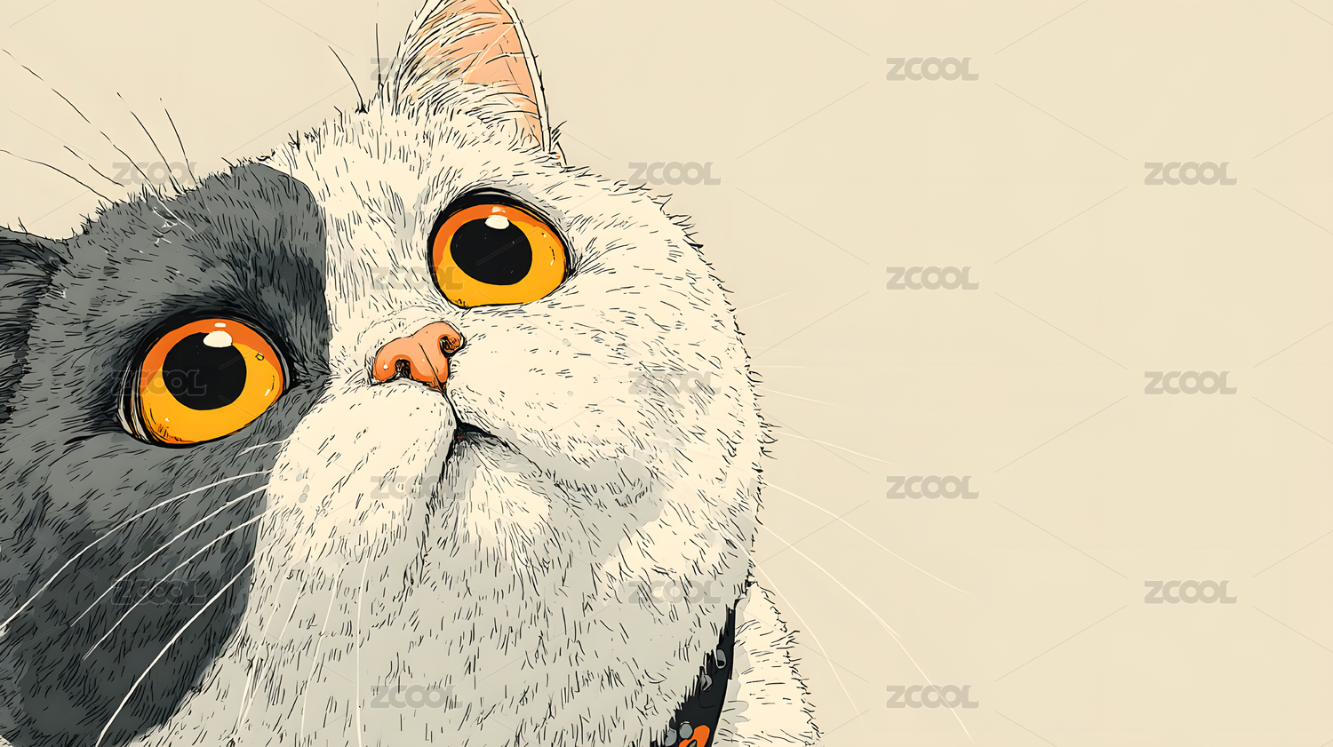 插画,背景,壁纸,抽象,简约,卡通,可爱,猫咪,猫眼,手绘