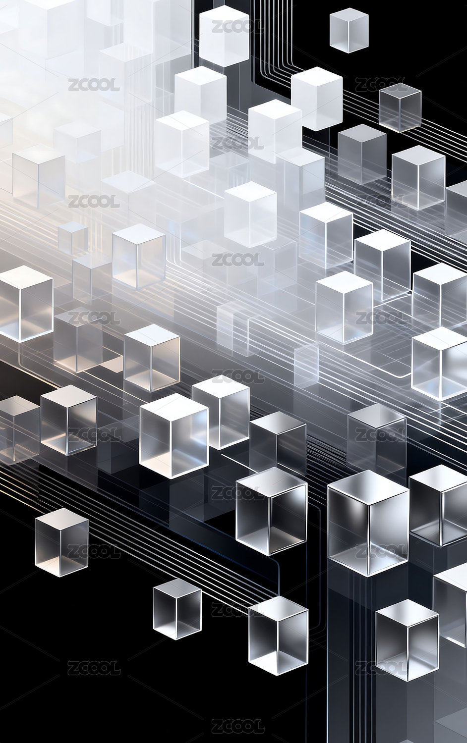 黑白立方体与线条构成的抽象图案