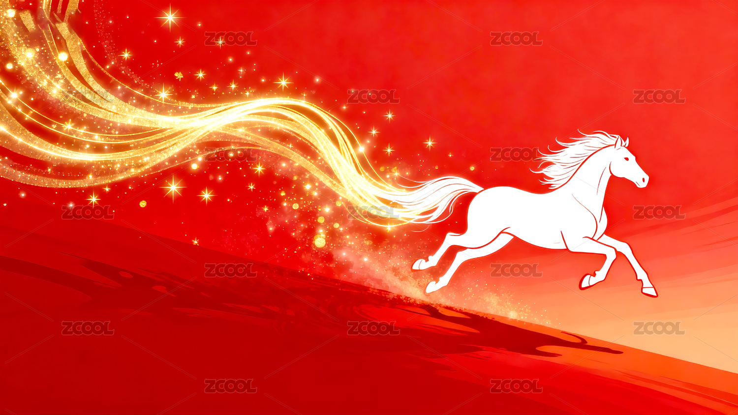 骏马,鬃毛,尾巴,头部,线条,曲线,背景,红色,动态,奔跑
