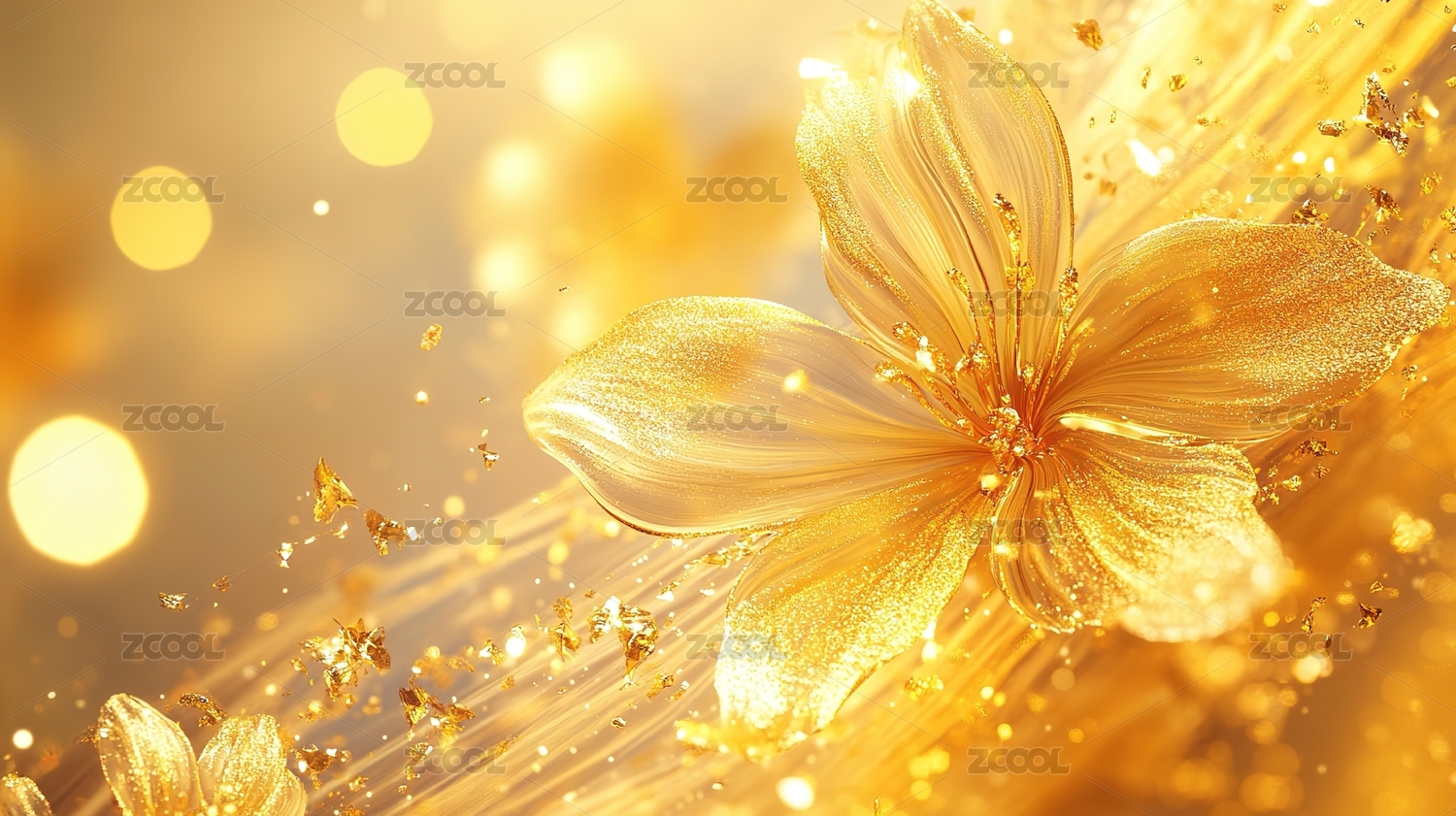金色花卉特写3d抽象花朵PPT主视觉背景