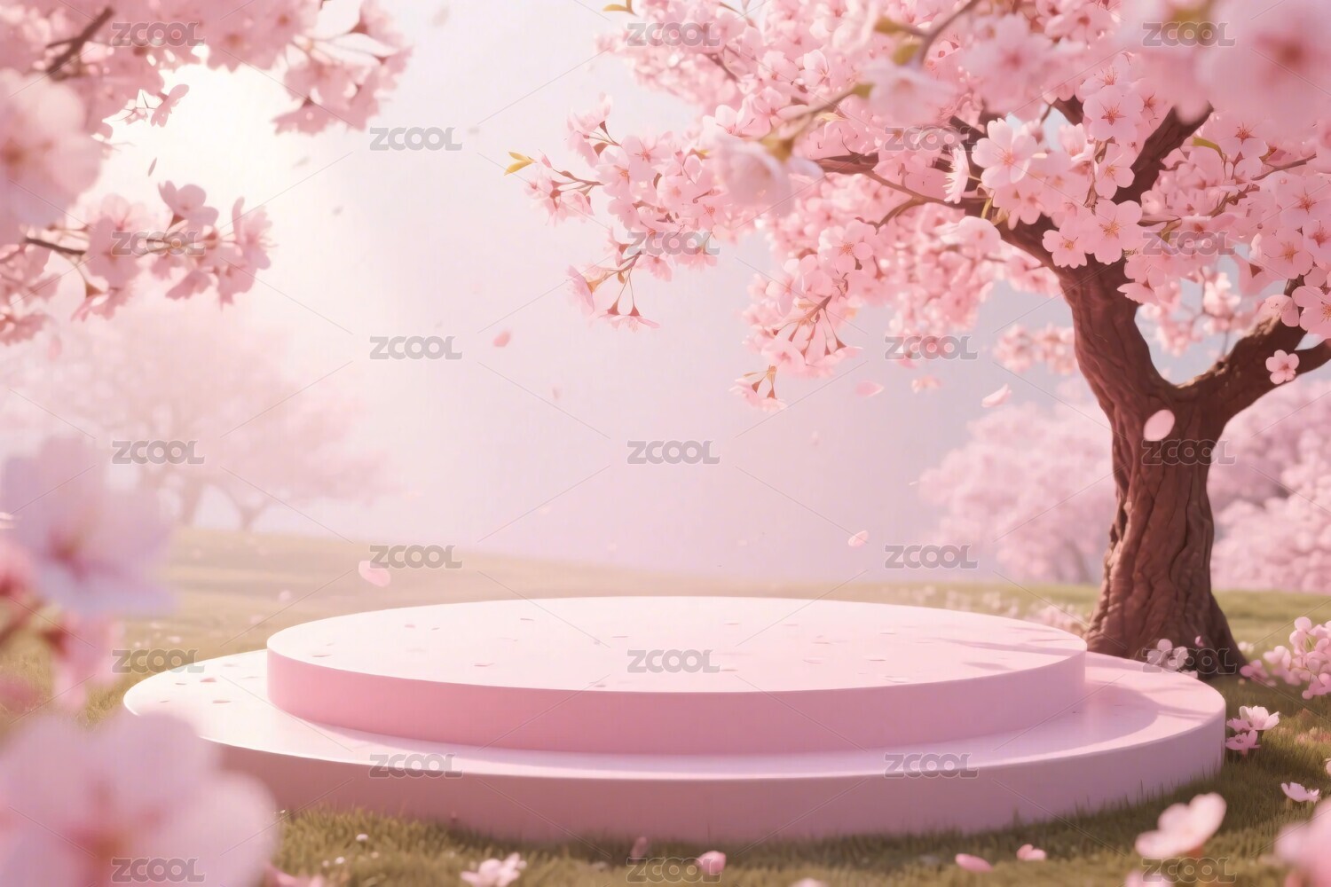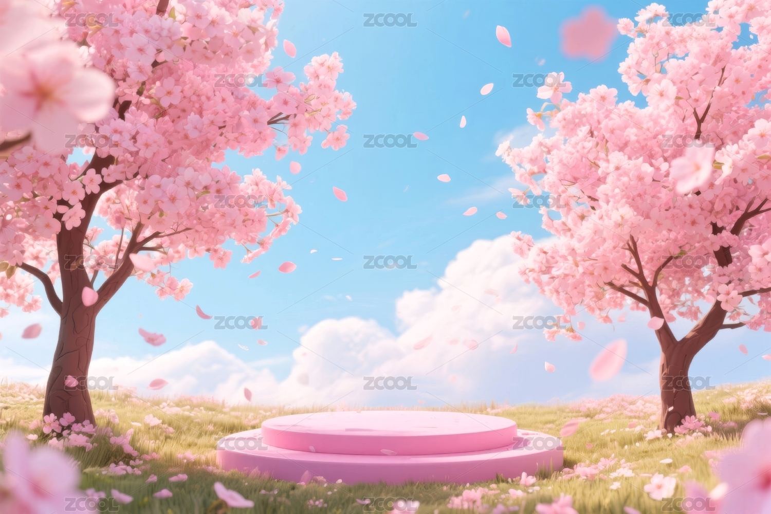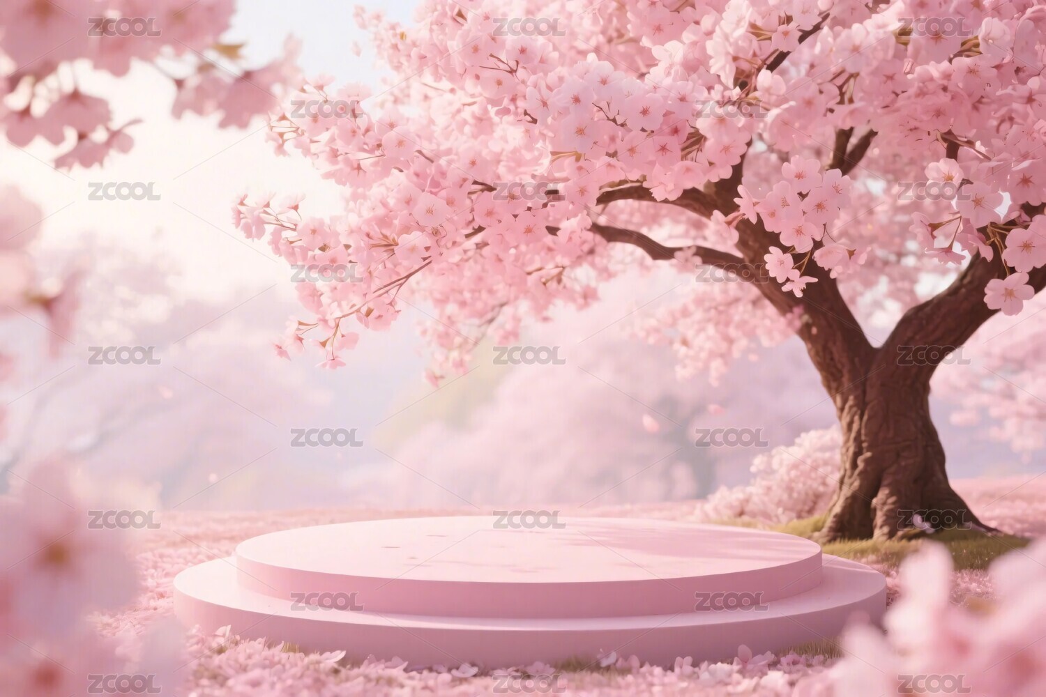 樱花,粉色,圆桌,梦幻,风景,自然,春天,插画,圆形,装饰