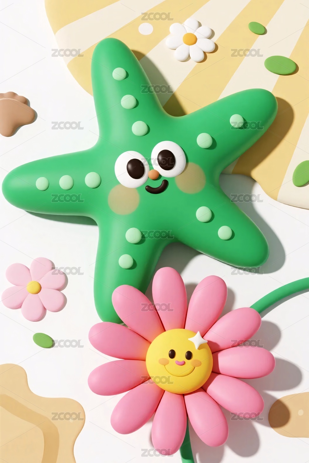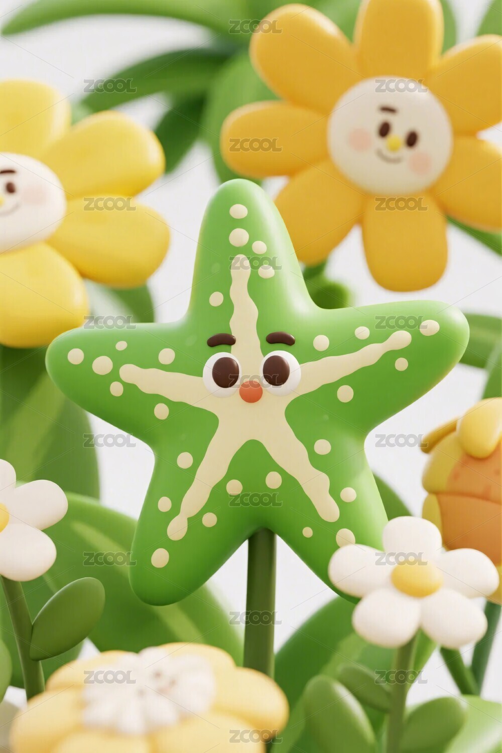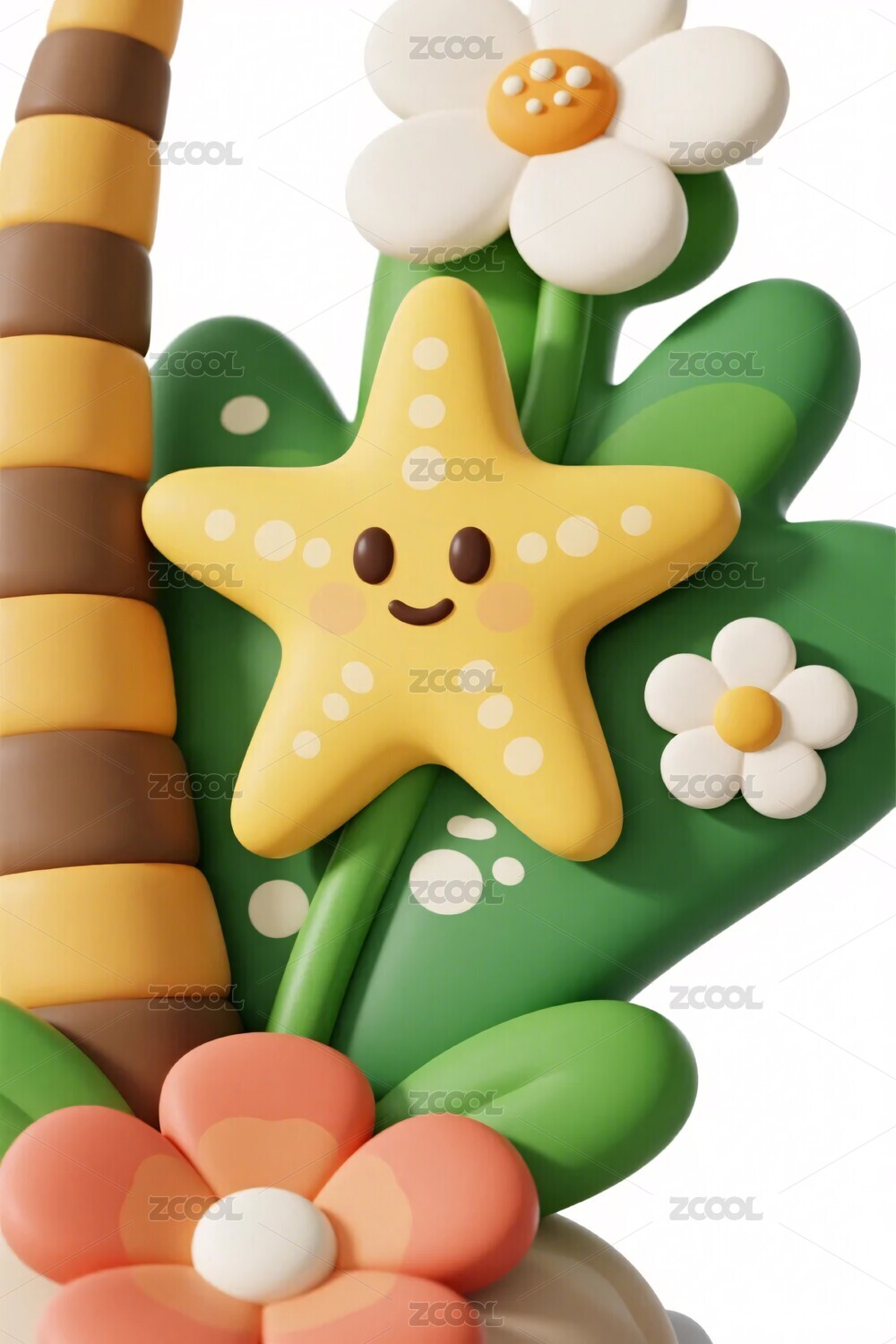 星鱼,花朵,卡通,童趣,可爱,插画,模板,植物,石头,海星