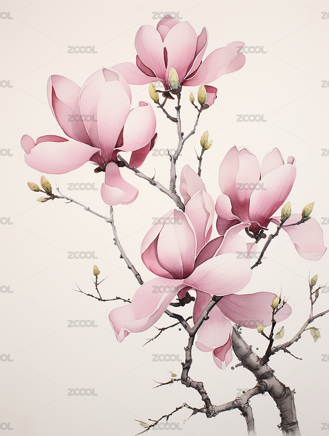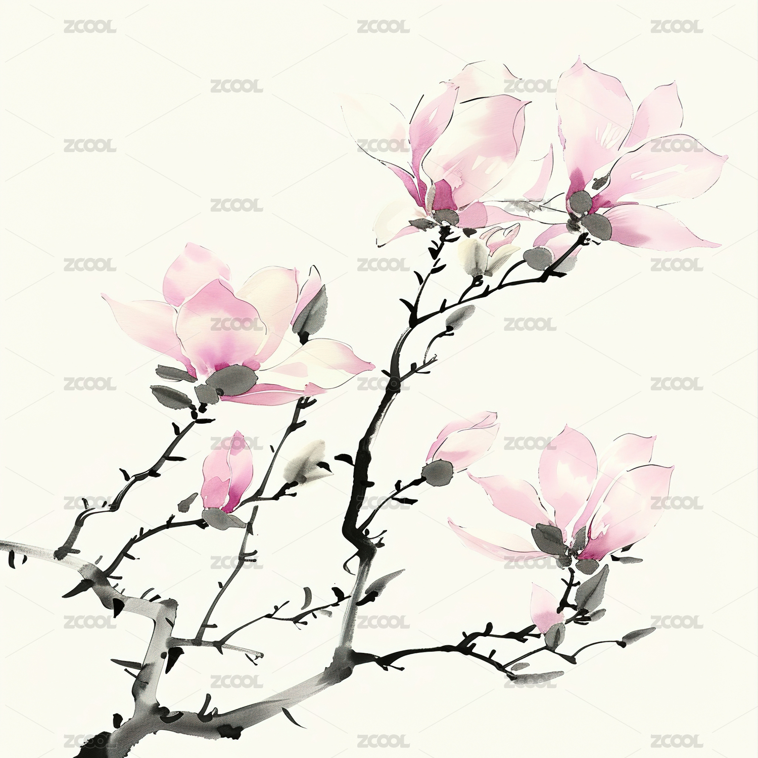 玉兰,国画,花卉,花朵,花枝,水墨,插画,国风,艺术,装饰