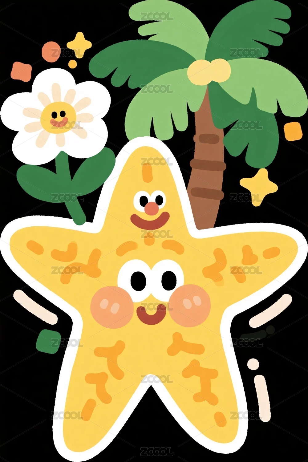 卡通海星花朵插画