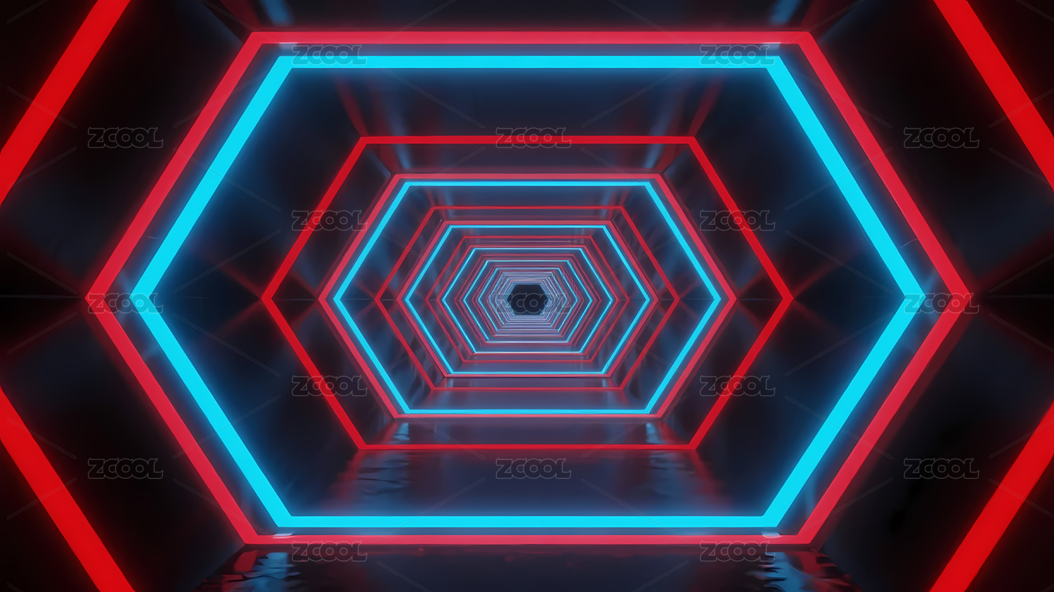 科幻六边形霓虹隧道