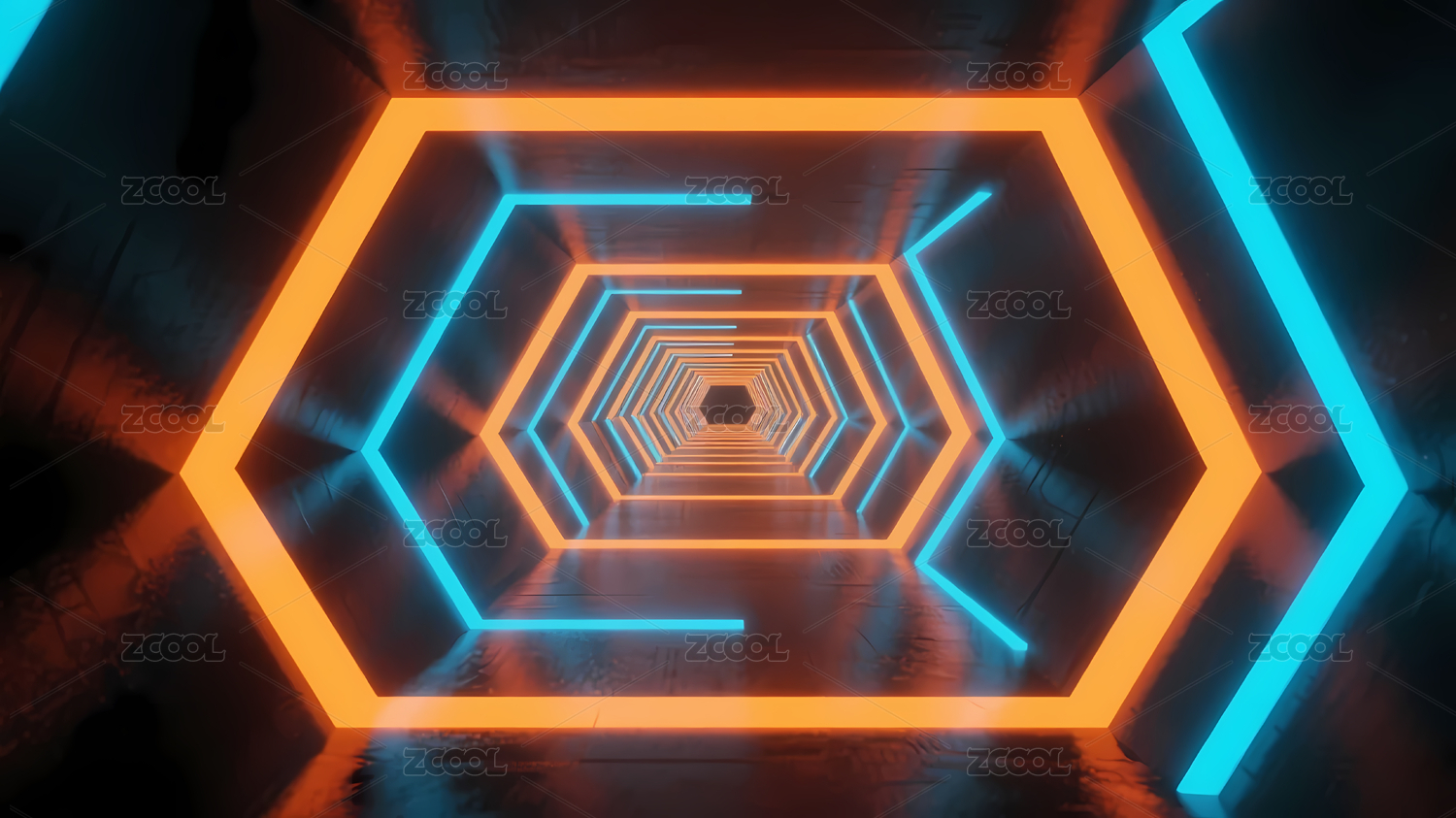 橙蓝霓虹六边形隧道